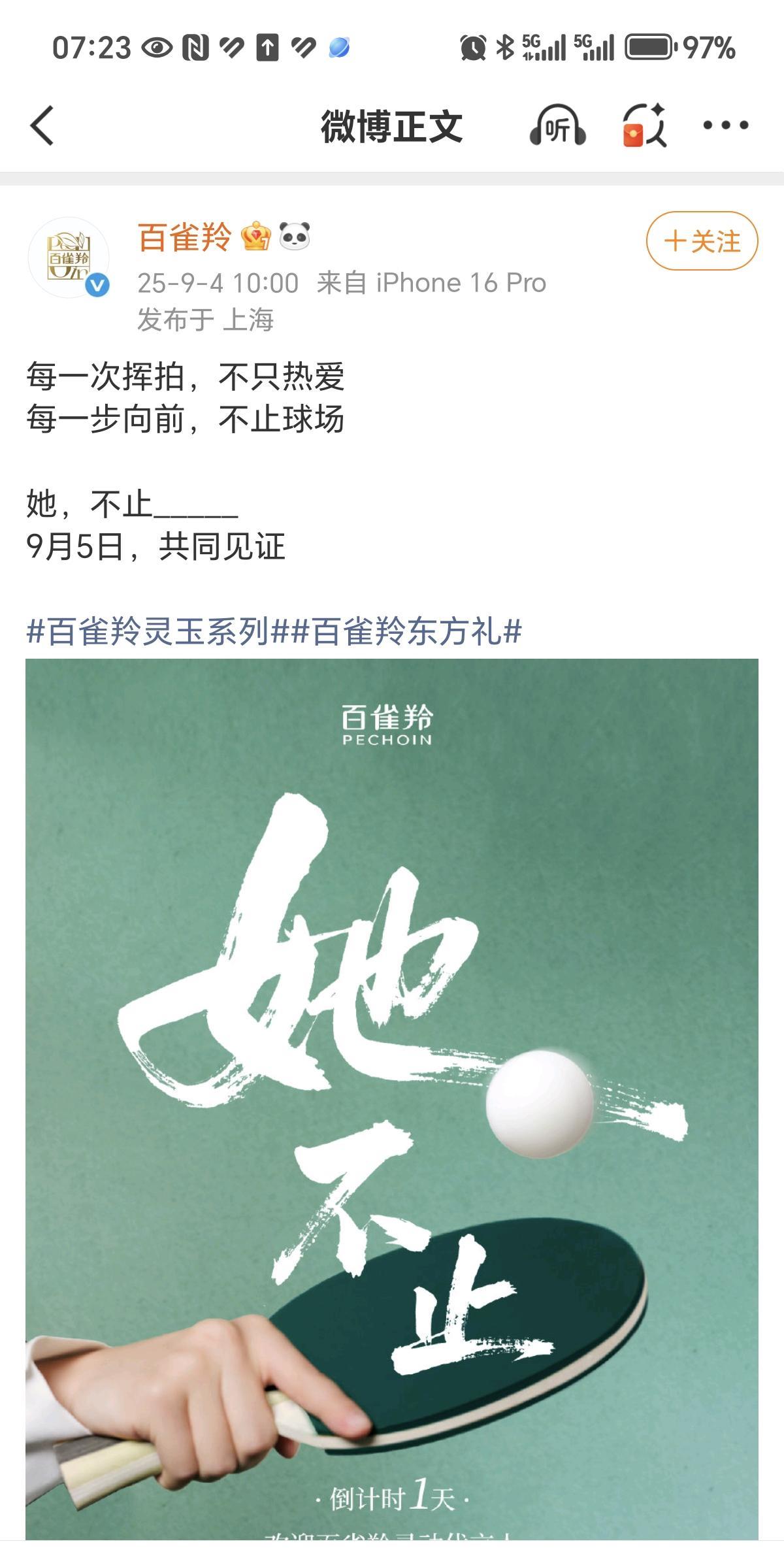 09月04日,百雀羚晒出神秘新成员,有粉丝猜测这神秘成员是王曼昱,从模糊的视频可以清晰的看出是王曼昱,百雀羚将在09月05日官宣新成员 百雀羚在社交软件上,14:09分卡点晒出新成员,这个卡点既熟悉又耳熟,喜欢王曼昱的粉丝都知道王曼昱的生日是02月09日,百雀羚真是用心又暖心,眼光还独到,挑选了善良又美丽,低调又帅气的王曼昱,她在乒坛上长期没有主管教练的情况下,披荆斩棘,砥砺前行,几乎每次比赛都挺进决赛,她在赛场上的拼搏精神跟国民品牌百雀羚同样令人感动,强强联手,开启全新篇章,期待百雀羚的官宣日子