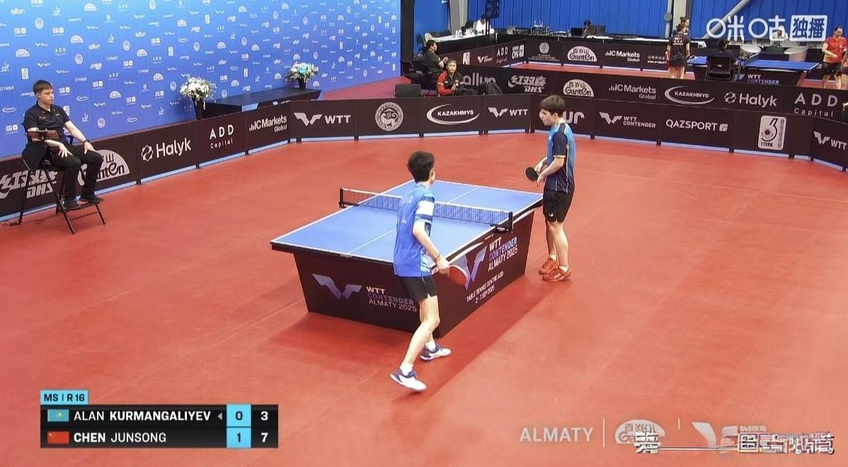 小将陈俊菘继续高歌猛进!轻取东道主选手晋级男单8强! 今天,WTT阿拉木图常规挑战赛男单1/8决赛,中国19岁小将陈俊菘对阵哈萨克斯坦的阿兰·克尔曼加利耶夫。 3:1(11:4、11:4、9:11、11:9),小将陈俊菘发挥出色,轻取对手晋级男单8强。 恭喜陈俊菘!
