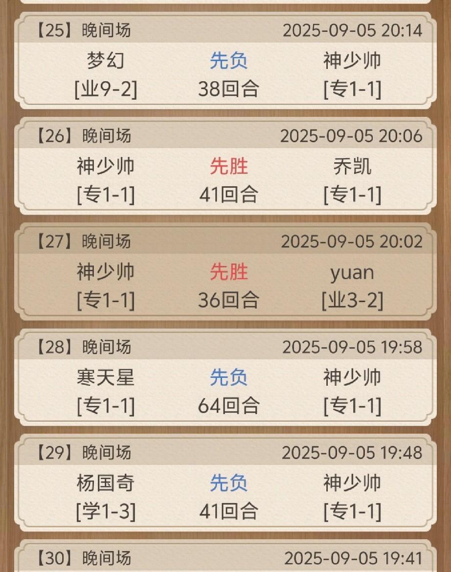 2025棋王赛第44场,神少帅重回巅峰,惊险夺冠,刷新了纪录,第27冠到手! 战况: 今晚28胜8平4负!1盘超时,3盘输软件,发挥神勇,夺冠过程很惊险!倒数第二盘,被打死车,眼看到手的冠军要飞?果断一车换双,逆风翻盘,险胜! 从软件手中夺冠,可谓是虎口拔牙啊!两位功臣神助攻,护驾有功,加封太子太保! 小结: 真不容易,参加了44场棋王赛,27冠,12亚,2季,3殿!有软件在,夺冠几乎没有可能,今晚可以说是一个奇迹,太难了! 纯人力压软件夺冠,史无前例,可以说是刷新了纪录,创造了奇迹!加油! #头号创作者激励计划#