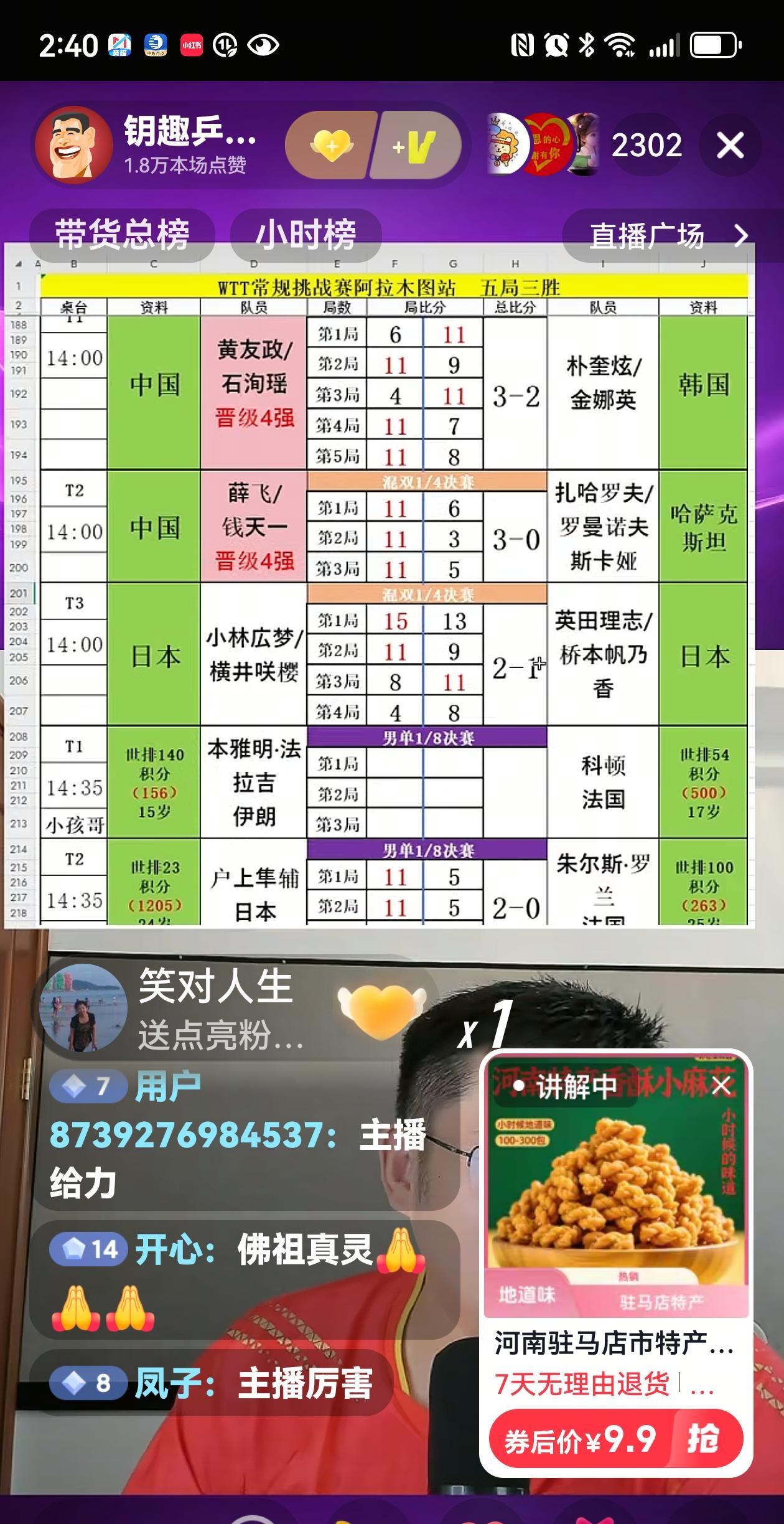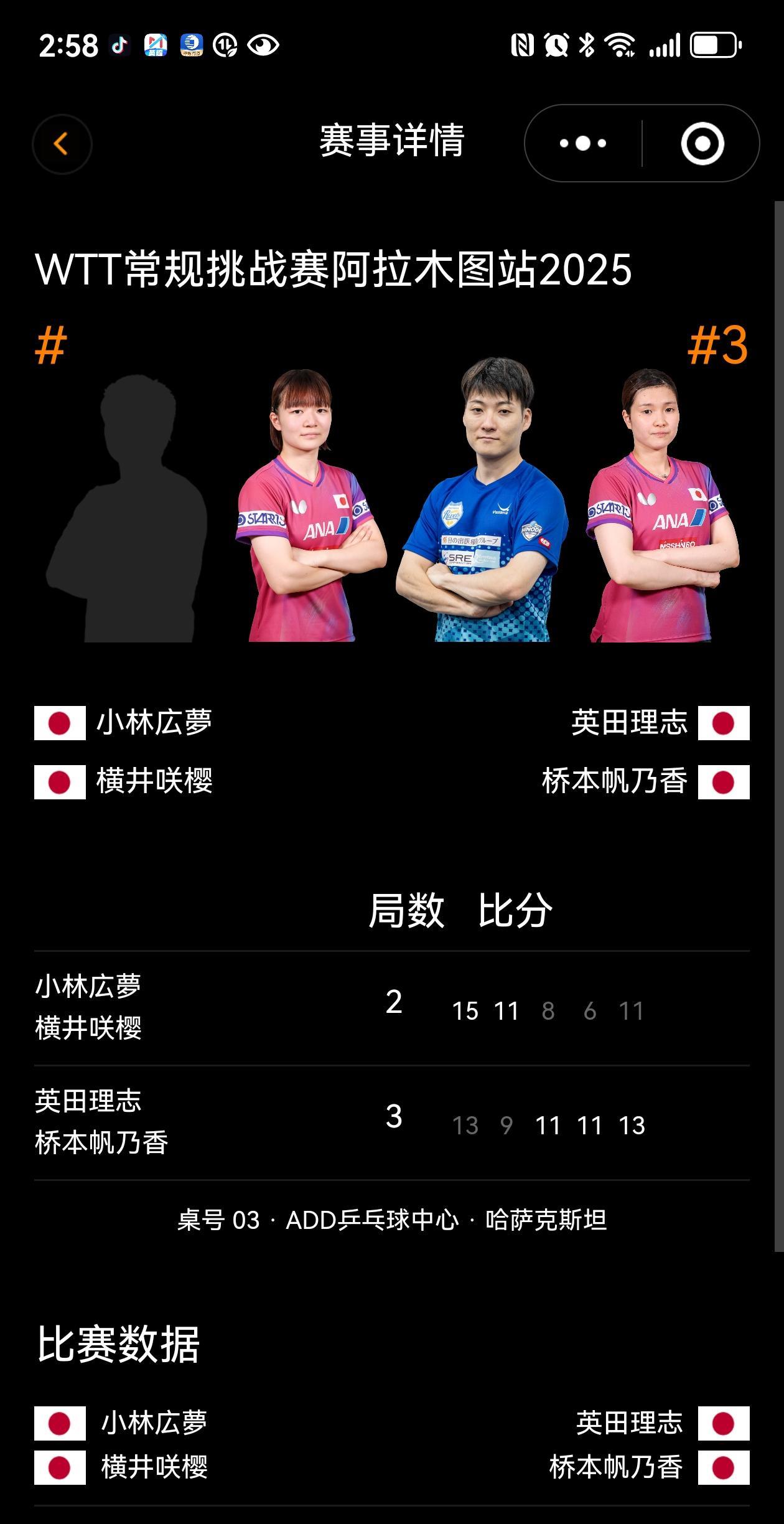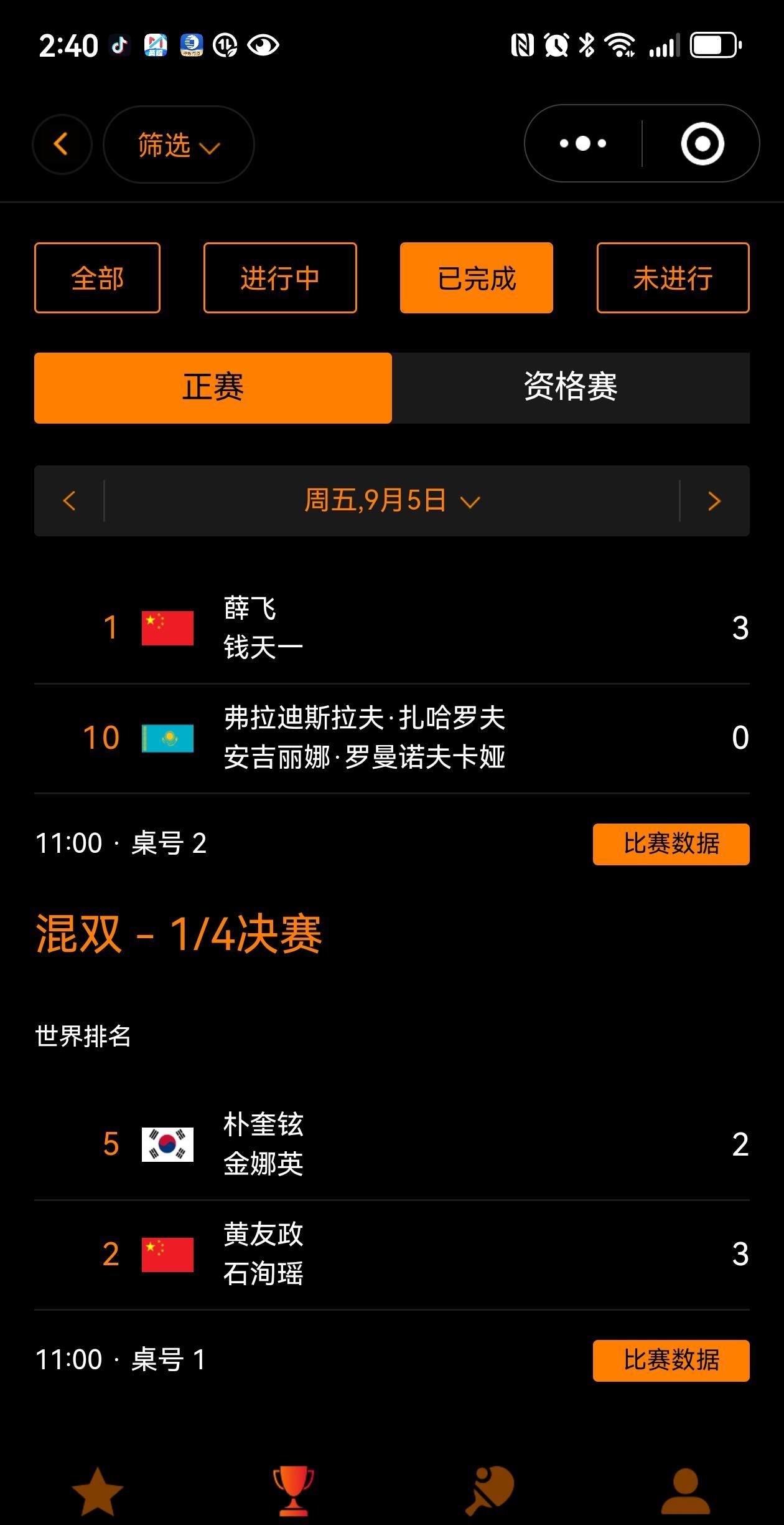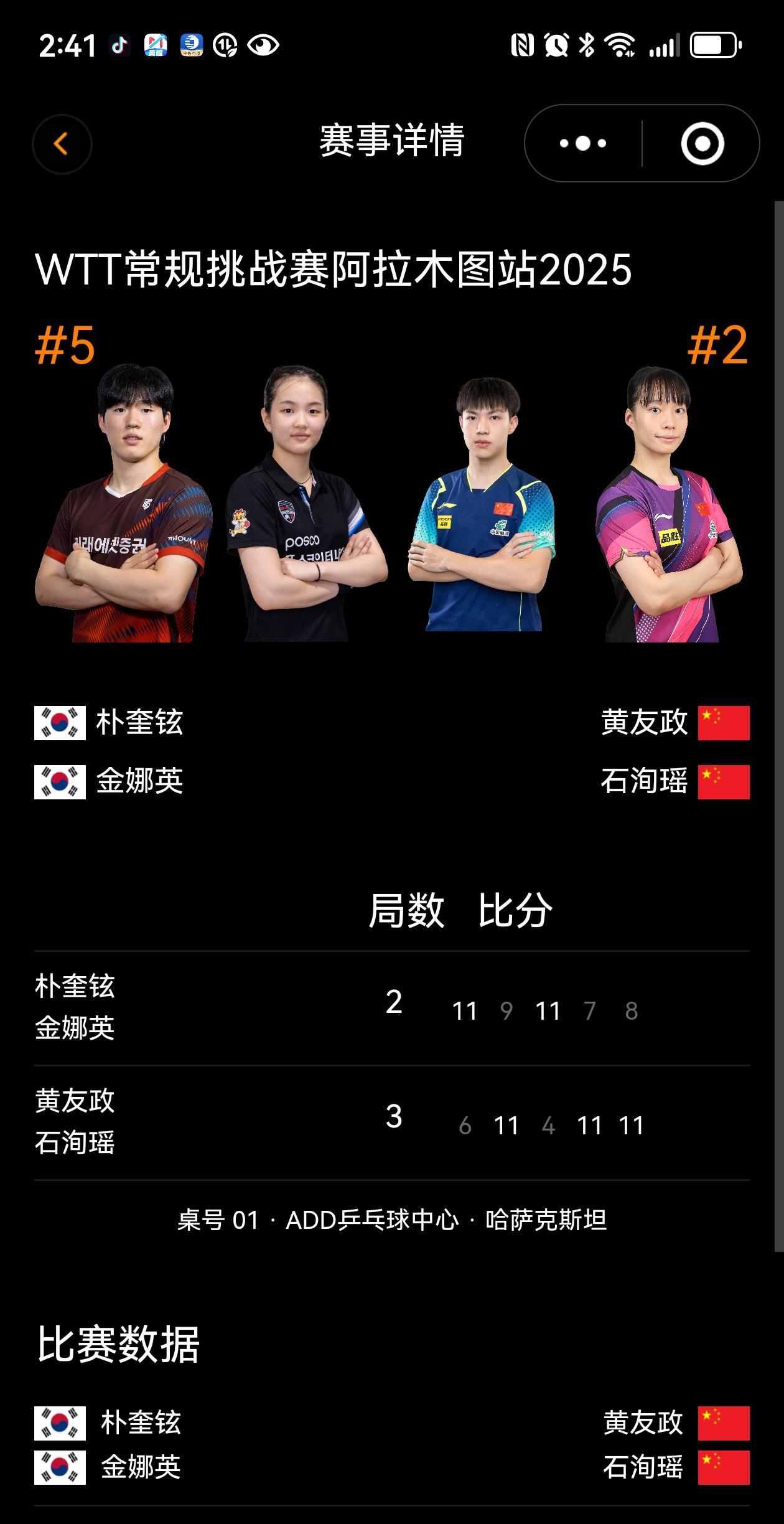 WTT常挑阿拉木图站2025(9.2-7),9.5日捷报:混双1/4赛,飞天组合