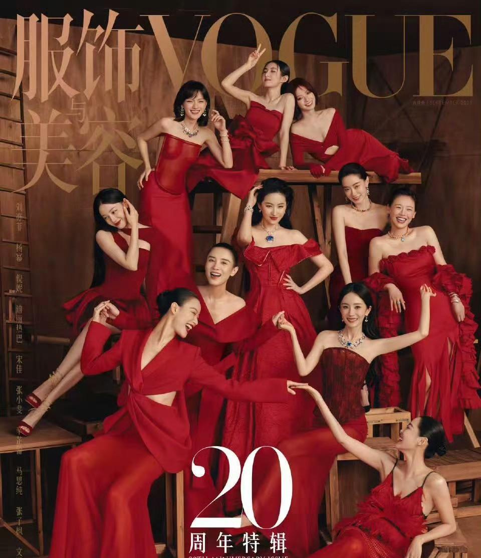 VOGUE这封面的构图绝了!一眼看去,妥妥的刘亦菲和她美丽的伴娘们。C位压轴是意