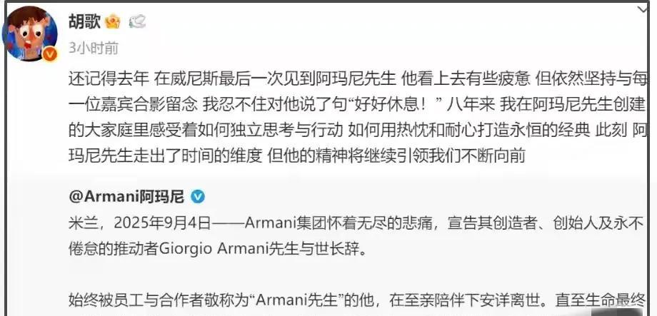 大阅兵后第二天,人性的自私与自利,就展现了!阿玛尼老总死了,众星都在发文悼念,又