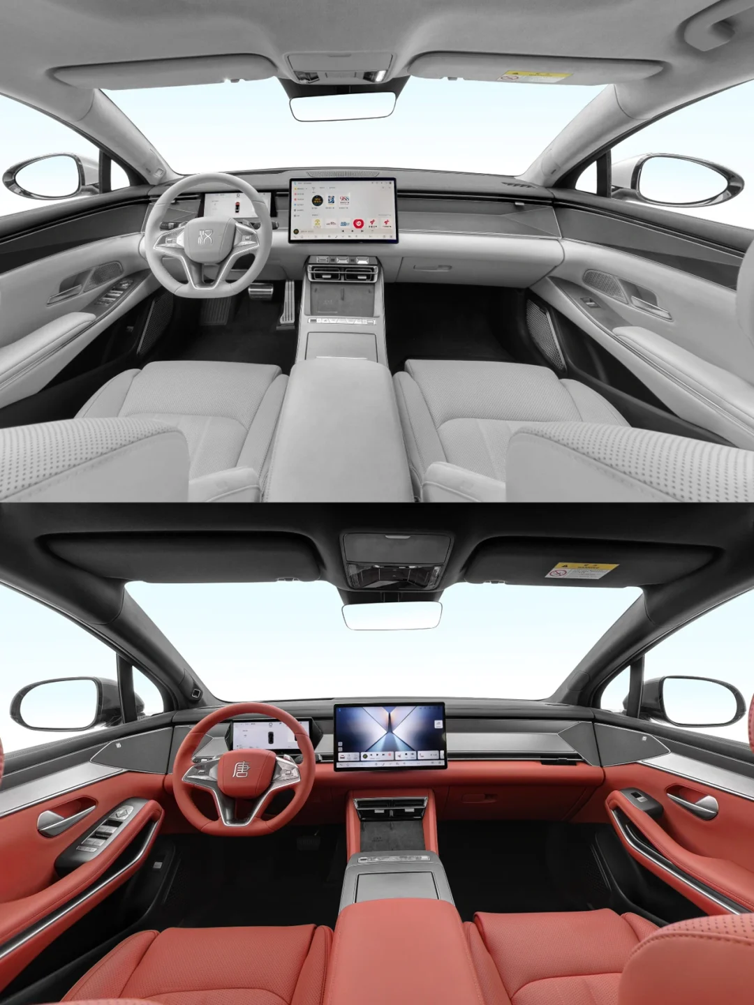 ● 座椅舒适:汉L后排肩部空间宽敞,唐L采用2+3+2的7座布局,前两排座椅支持通风、加热、按摩,唐L还配备车载冰箱,细节配置贴心。