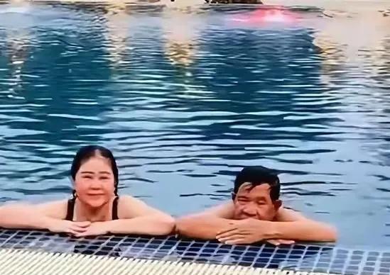 看看洪森亲王夫妻多么幸福,两个人在游泳池里玩耍,二人世界,周围没有其他人,不像我