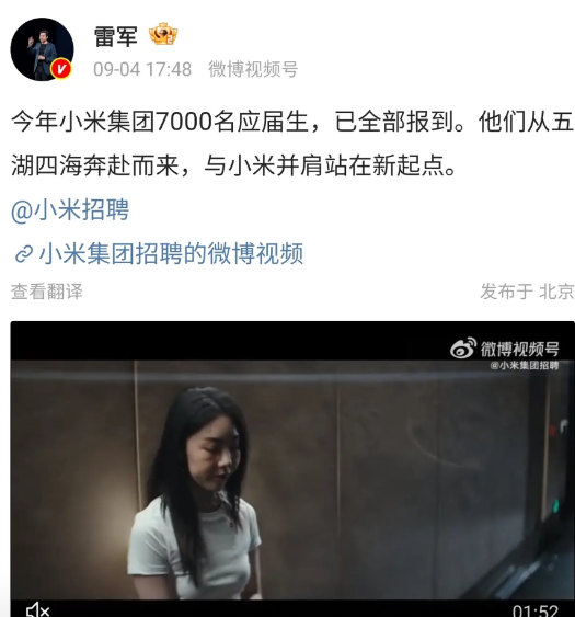 雷总在网上骄傲得宣布,自己公司今年招了7000名“应届生”,并且全部报道。 小米