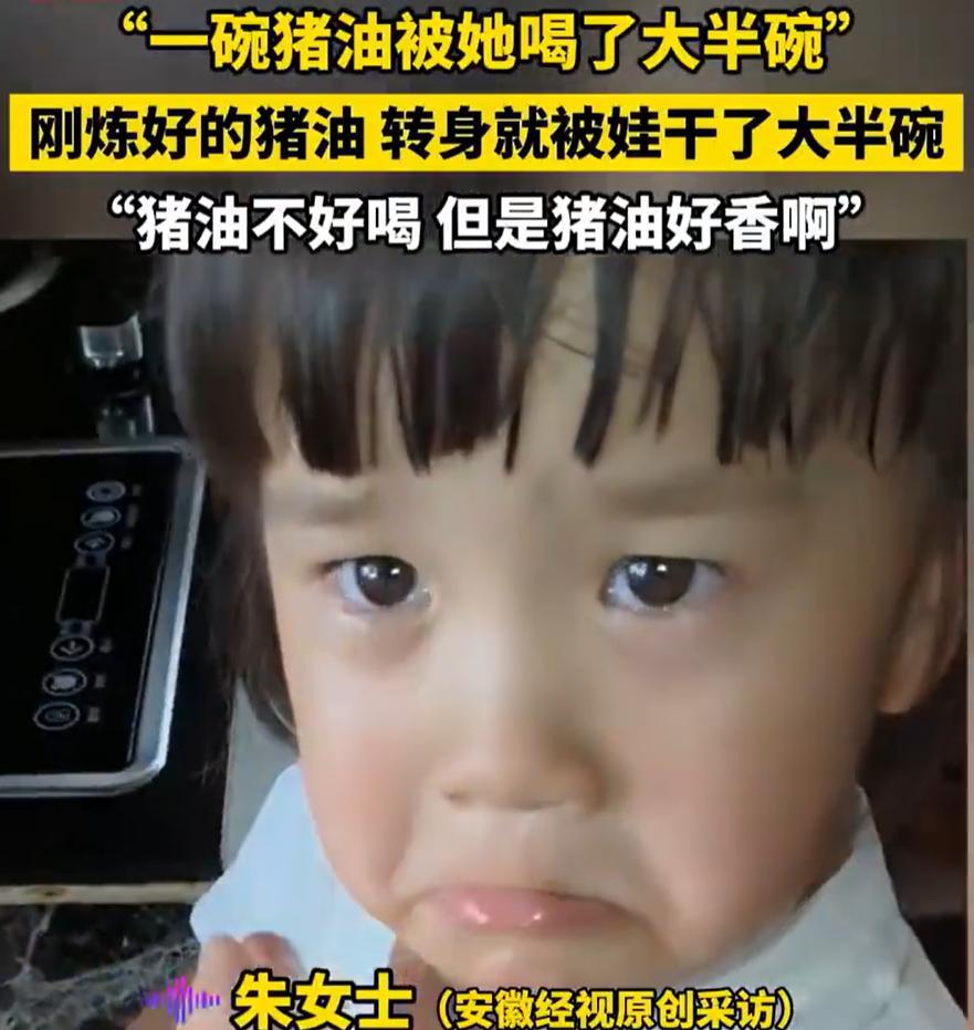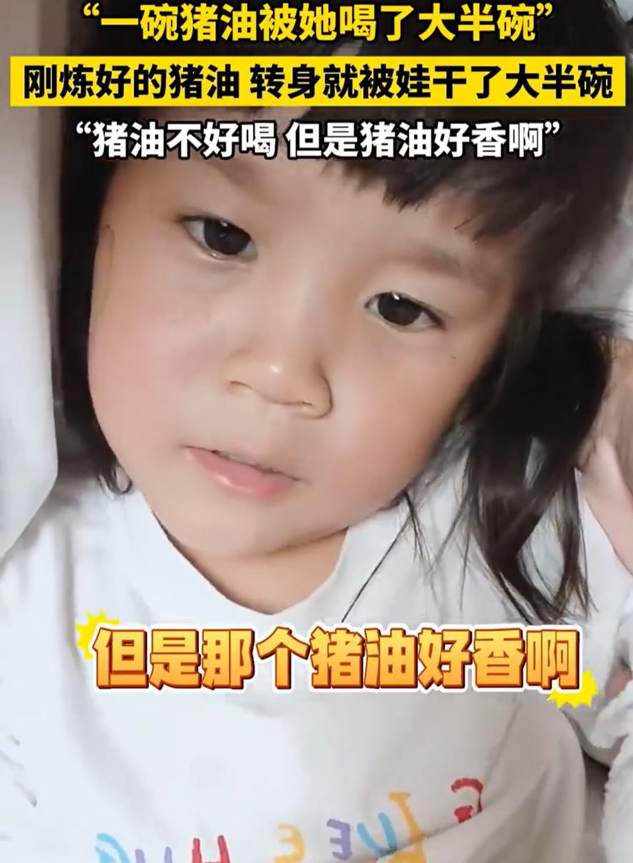 安徽马鞍山,女子在家中炼猪油,弄好后就放在厨房不管了,晚上女儿突然走过来和她说:那个猪油不好喝!女子连忙到厨房查看,发现炼好的猪油竟然都被女儿给喝了 女子介绍,当时他顺手就放在厨房台面上晾着,转身去忙别的事了。没想到,家里的小女儿被这股浓香吸引了过来。孩子哪分得清是油还是汤,只觉得闻起来这么香,肯定是什么“好东西”。于是端起来就喝,咕咚几口,小半碗猪油就这么下去了 等她发现刚炼好的猪油只剩了个碗底,一下子愣住了。小女儿还一脸天真地跟她说:“妈妈,那个猪油闻着香,但一点都不好喝。” 妈妈当时就懵了,站在原地几十秒没反应过来。她后来哭笑不得地说,自己听说过有人喝排骨汤、鱼汤,还真没听说过有人喝猪油的。那种油腻厚重的口感,别说孩子,大人也难以下咽 其实这孩子也不是第一次“尝鲜”。妈妈说,小女儿是个标准的小吃货,平时看到没吃过的东西总想试试味道,只是没想到这次连猪油都给喝了 说起来,这个事虽然好笑,但也挺让人后怕的 一般来说,偶尔误食点问题不大,毕竟猪油就是食用油的一种,人体可以消化吸收。真正需要担心的是量,如果一次性喝得太多,可能会引起身体不适 另一方面,猪油刚炼出来的时候温度很高,如果孩子好奇心一上来,没等凉透就端起来喝,那后果就不仅仅是油腻不油腻的问题了