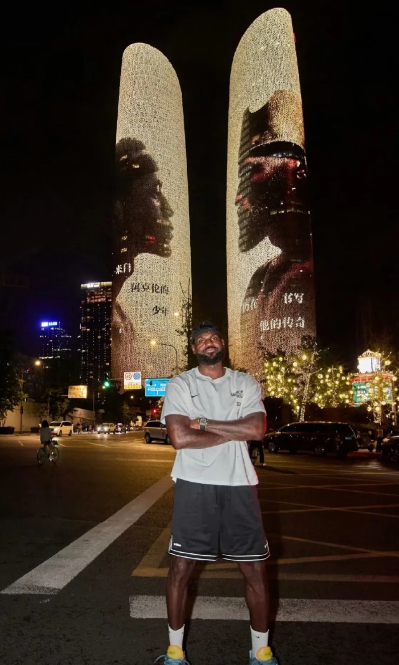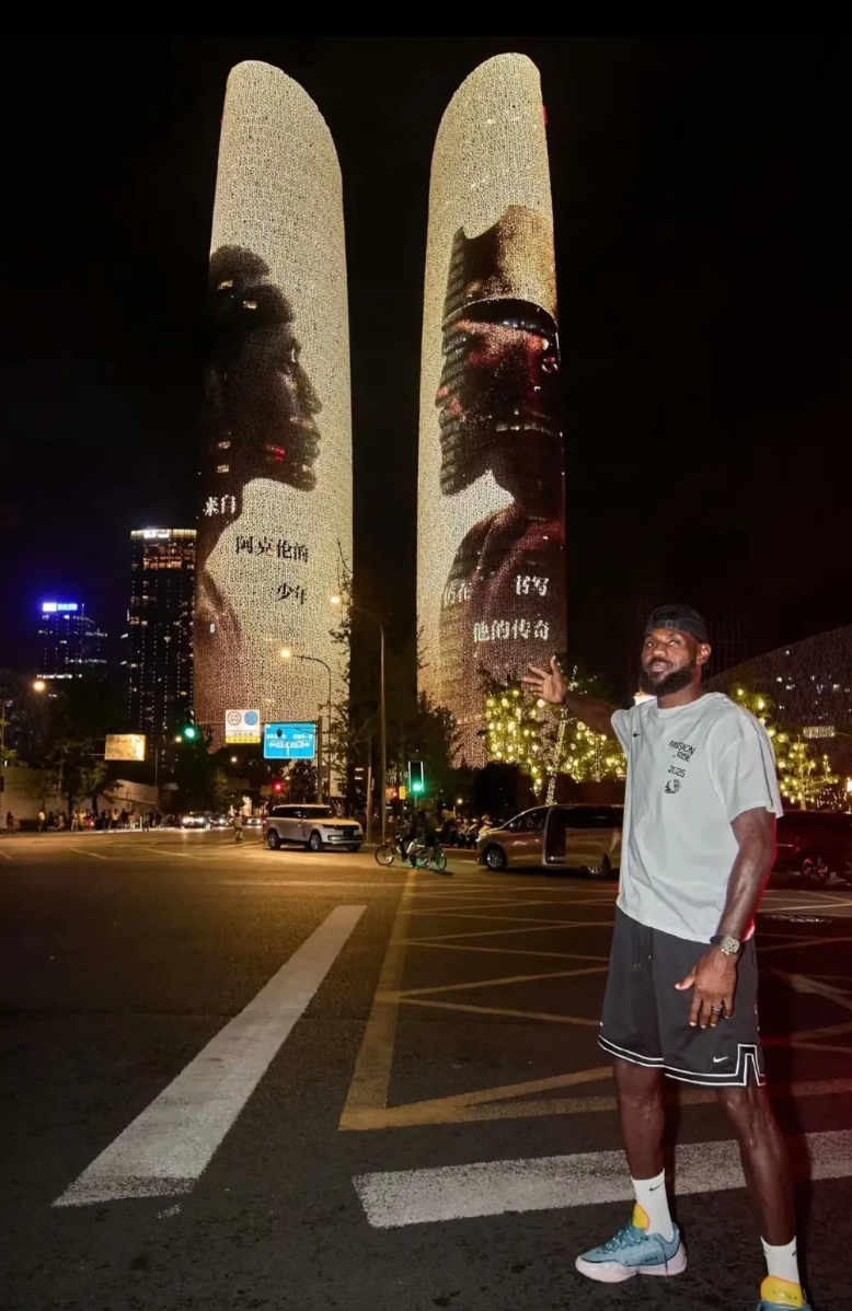离开中国前,詹姆斯在成都双子塔留下打卡身影!