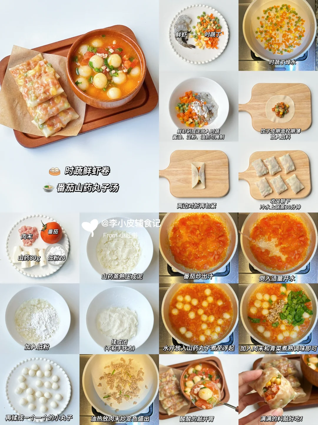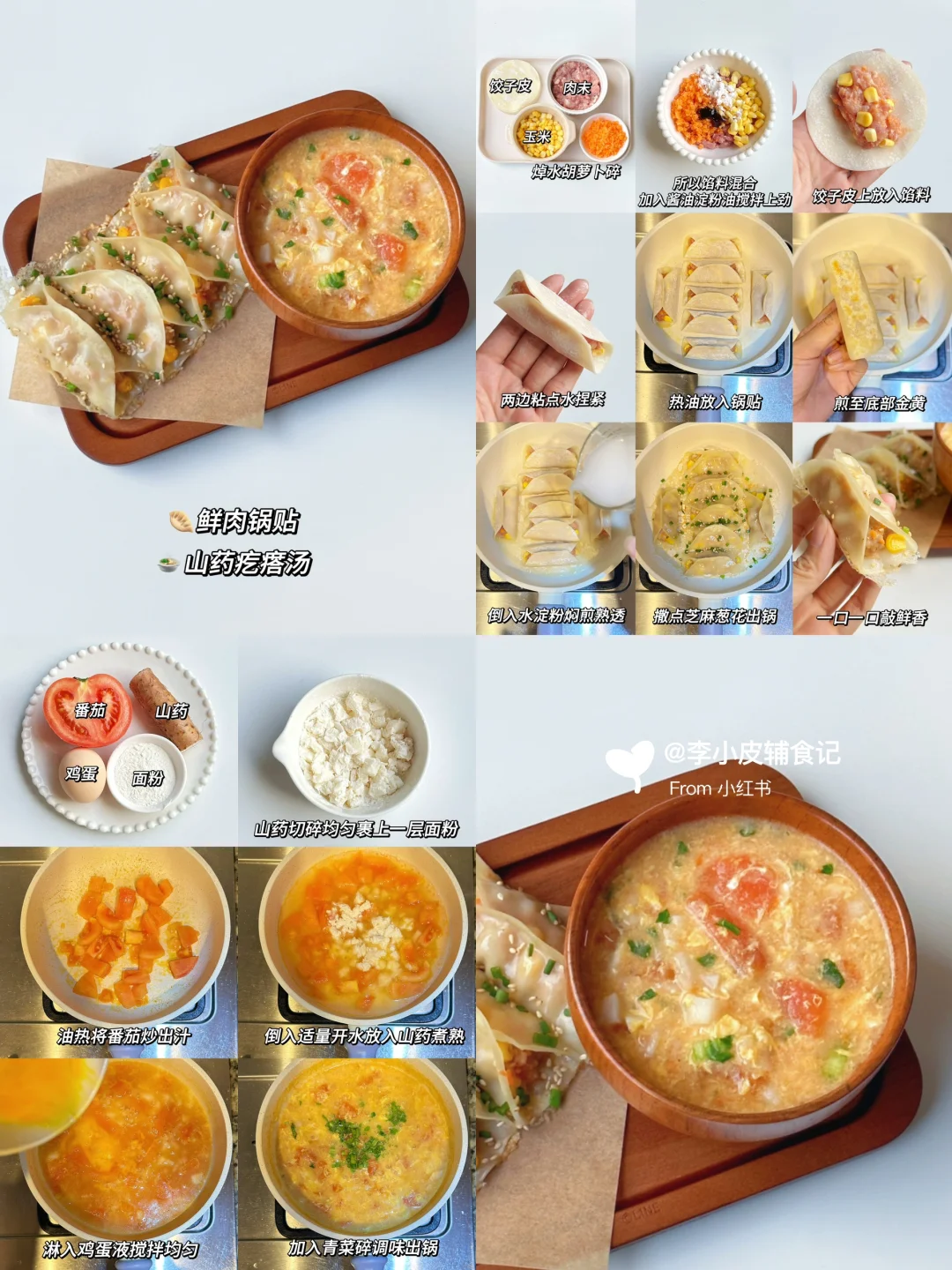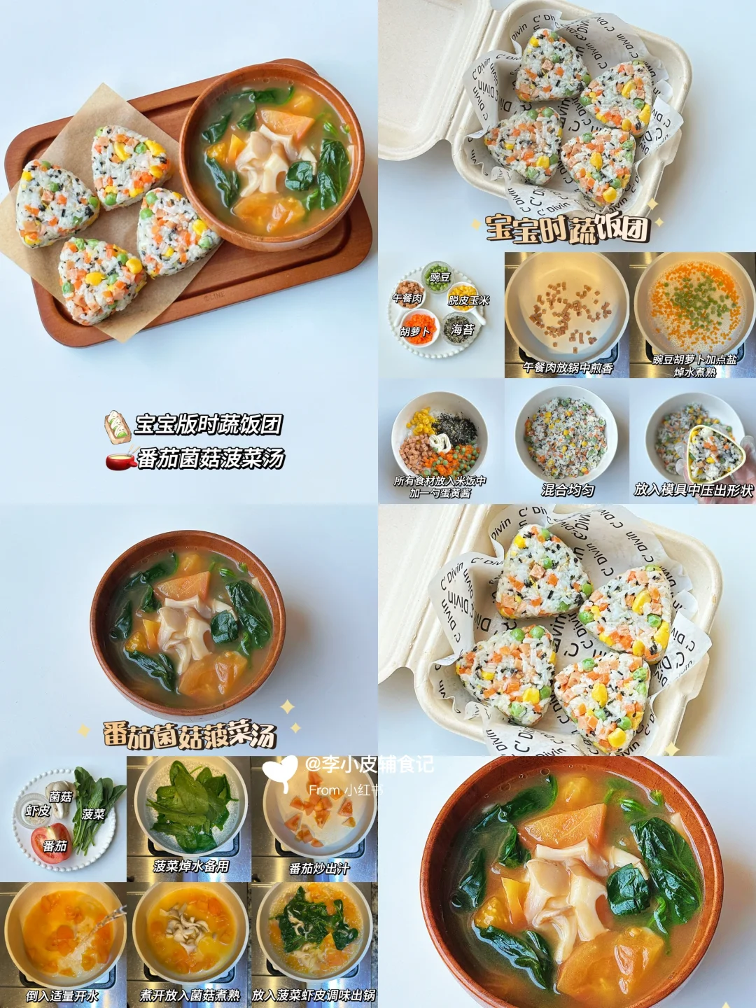 每天发愁不知道给宝宝做啥吃的麻麻快来码住了![派对R] 今天整理了几款不重样的花样晚餐做法合集,色香味俱全,饭渣宝宝都能全部炫光光~做法简单好吃不费妈,快收藏起来吧![偷笑R] - 🥬时蔬饭团➕番茄菠菜菌菇汤 🫐蓝莓山药软饼➕时蔬鲜虾粥 🍅鲜肉锅贴➕番茄山药疙瘩汤 🥟肉松芝士手抓饼➕鲜肉紫菜馄纯 🍤时蔬鲜虾卷➕番茄山药丸子汤 🎃南瓜烤蛋奶➕香菇肉酱汤面 🌈具体做法参考图片哦~ 👩🏻🍳食材大小和分量根据宝宝的咀嚼能力和实际情况来处理喔~