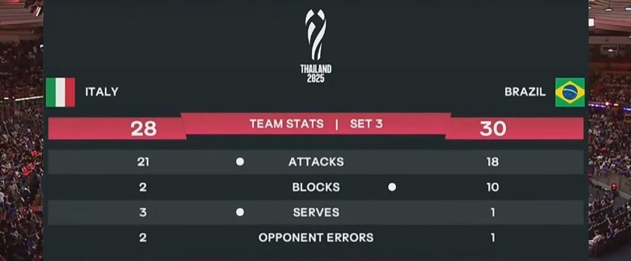 世锦赛半决赛,第三局精彩的攻防大战太精彩了!巴西女排30-28险胜意大利女排! 巴西女排前三局2-1领先! 巴西女排第三局胜在了拦网,拦网竟然得了10分! 双方从22平,打到28平,局末几分都是关键分找关键人。 巴西女排加比在前排,全给加比来扣,加比体能真强,一次次起跳抡大臂扣球,怎么不见疲惫呢? 加比的进攻,点燃了观众热情,现场燃爆了! 意大利女排打前排艾格努,艾格努换下后,打安娃这点。 #万能生活指南#