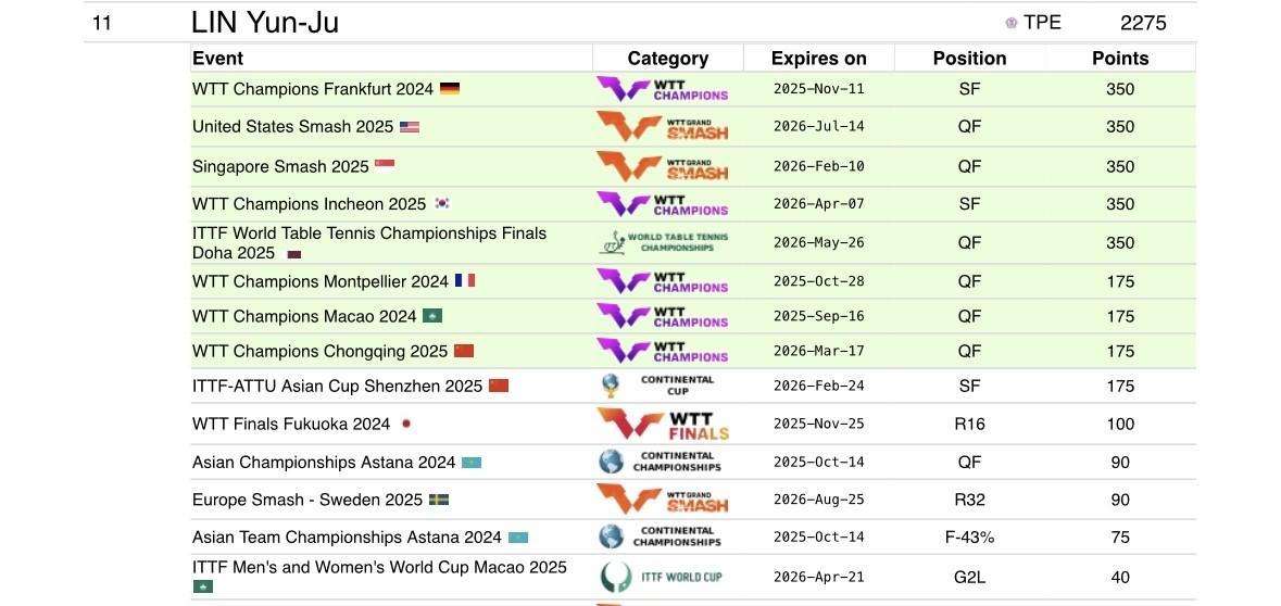林昀儒咋过成这个样子了:台林明日就要启程澳门冠军赛,全力以赴备战,因为【去年他止步8强,有175分要捍卫。】 林昀儒的八个有效积分里,最大一笔是350分,175分已经是他手头的第二大巨分。 这反映了一件事情:林昀儒已经很久没有进过决赛了。 具体来说,林昀儒整整两年,没有进过国际赛的决赛了。 在洛杉矶奥运周期愈演愈烈,外协有人爆种,有人爆冷,但是林昀儒在国乒粉丝心目中的地位越来越高。 今年连经常咧着嘴乐呵呵的德国选手邱党,都突然之间口碑暴跌,因为“赢了一次林诗栋,就敢如此狂?赢了一次而已,胆敢如此不谦虚?” 对于这种“外协越来越不谦虚”的现象,WTT大满贯历史上首位外协男单冠军莫雷加德,在瑞典勇夺冠军后,曾经如此在瑞典节目上锐评: 奥恰洛夫因为东京奥运会输给了马龙,而在中国社交平台暴涨了100万粉丝。中国人都惊呼奥恰洛夫也太厉害了! 而我在巴黎奥运会真的赢了王楚钦以后,以及这次瑞典大满贯,我真的赢了林诗栋以后,我掉了10万粉丝。 而林昀儒就不一样了,任何国乒主力的粉丝,就算拿着放大镜,聚在一起讨论,都探测不出来他半分“不谦虚”的迹象。 你解读不出来的本质原因,林昀儒在巴黎奥运会后的一年多时间里,赢过0个主力。 他是林诗栋的上上签,打九次,赢九次,碰到林昀儒,比碰上西蒙·高茨还令人安心。 他是王楚钦的上上签,头部外协人人赢了一次王楚钦,莫雷加德、雨果,张本智和,三个人范围涵盖奥运会、世界杯、WTT。 而唯有林昀儒,提供了绝对的情绪价值,亚锦赛团体赛、亚洲杯、多哈世乒赛,被王楚钦三连追杀。 所以,国乒粉丝收回了以前他们对别的外协说过的话,现在独宠林昀儒。 【小林是我到目前来说最喜欢的外协,只要不对上中国队,希望他赢。】 因为赢不了,所以特别可爱。 现在的台媒报道,对于林昀儒的行踪,也只能说,他正在赶赴【捍卫175分的路上】。 所谓的一线外协,人人都对国乒主力层有威胁,有冲击冠军的可能性。但现在的林昀儒还有吗?