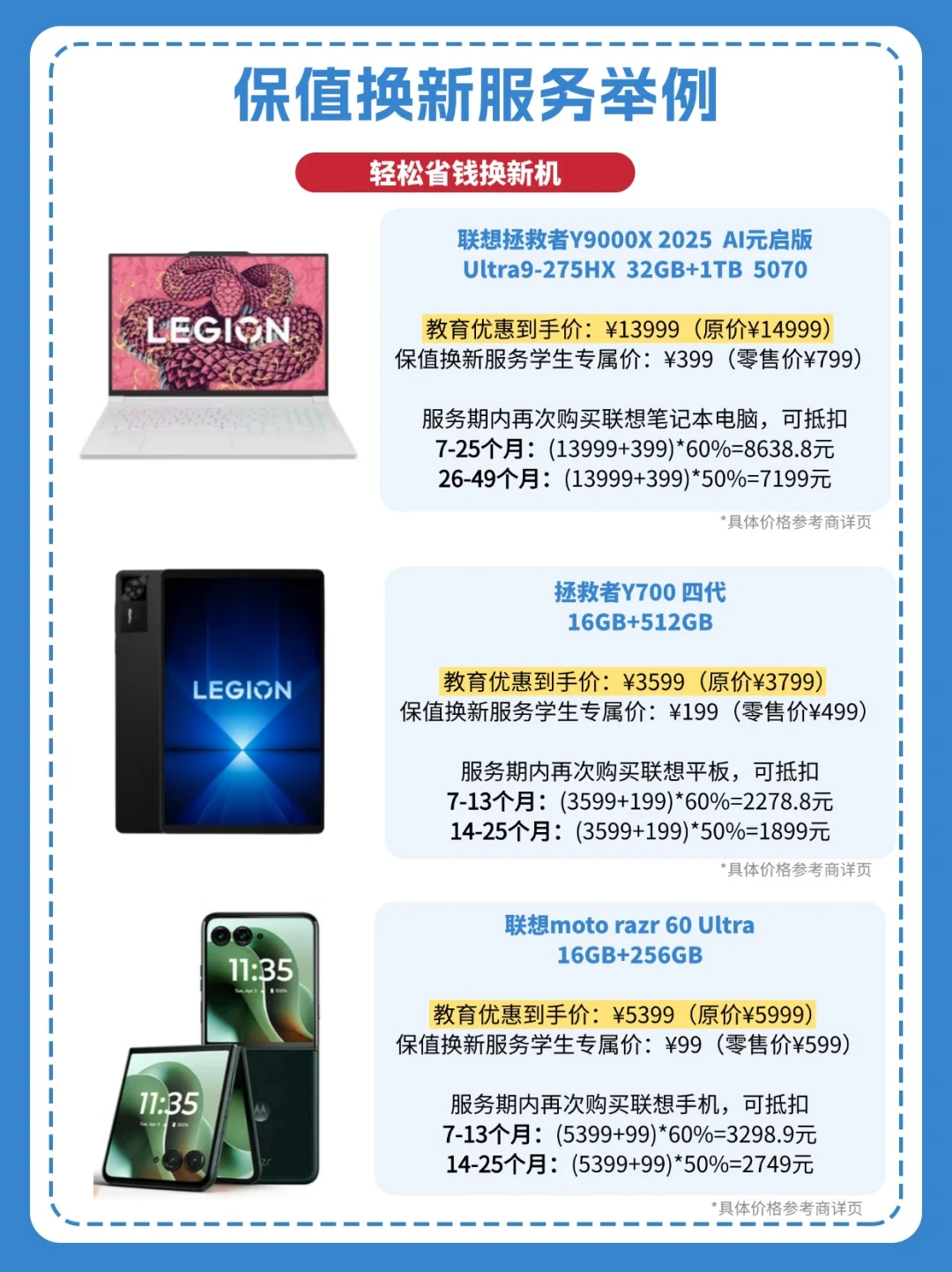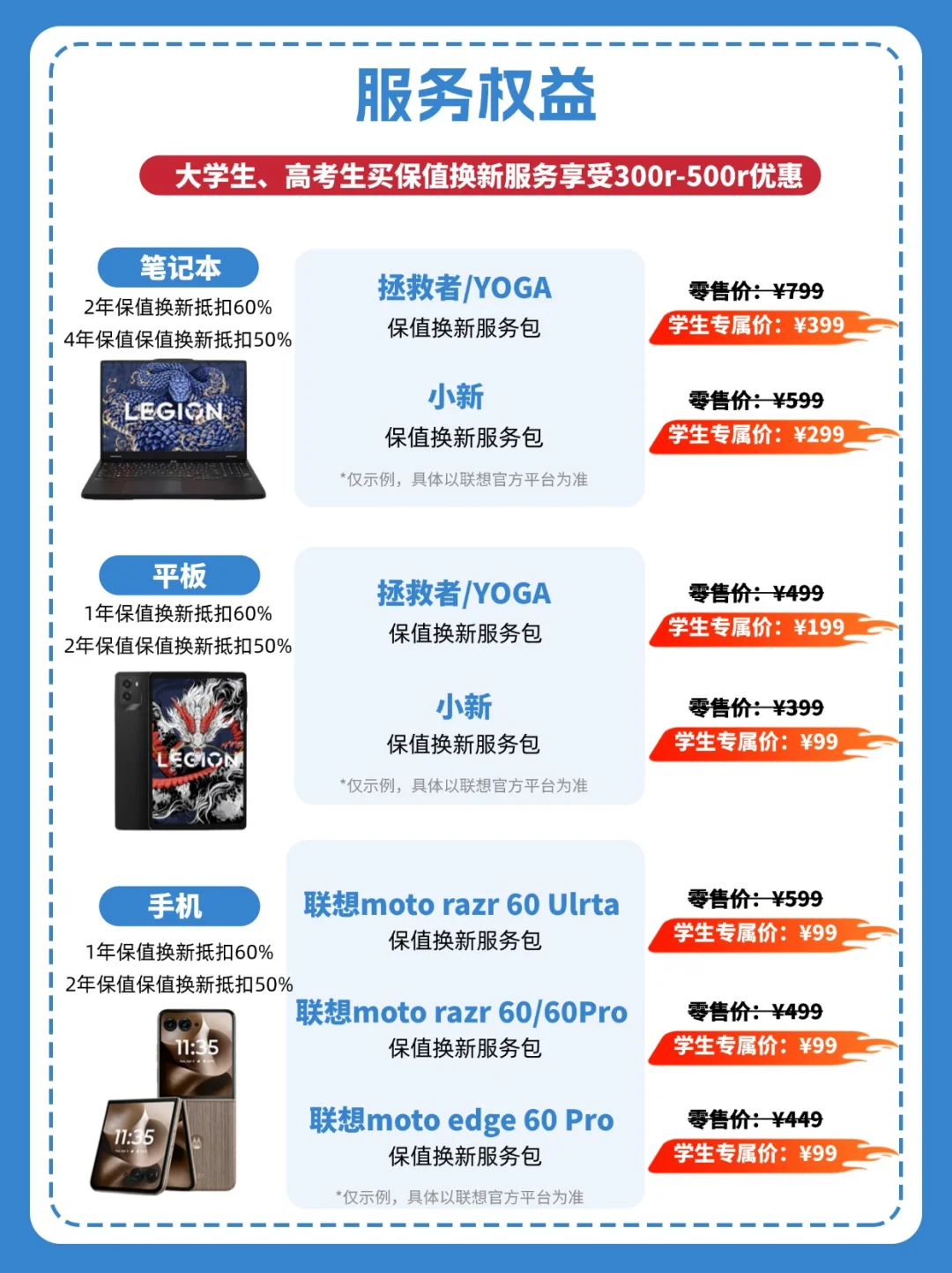 联想真是太懂大学生了!这次的教育特惠计划中包含了新推出的保值换新服务,学生加购服务包还能立减300-500元!