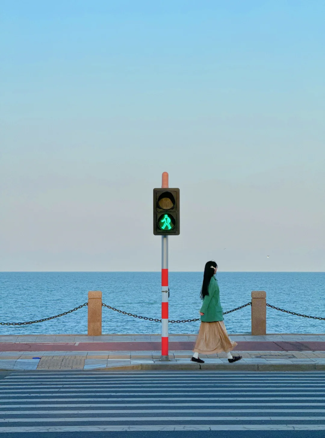 3️⃣海滨中路:导航“新城北街公交站” 拍斑马线尽头就是大海的氛围感