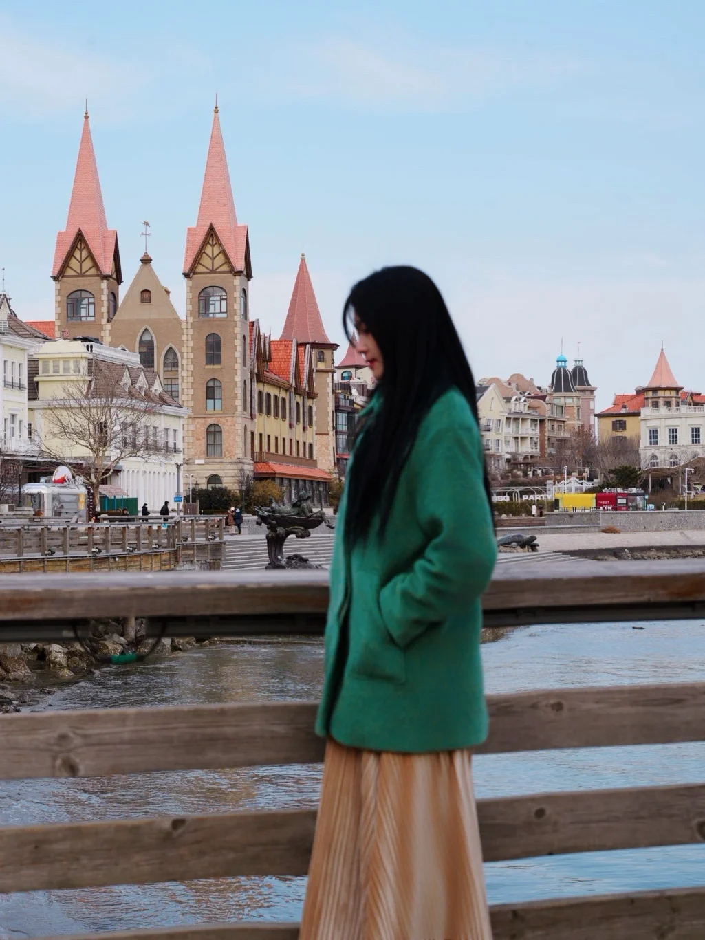 6️⃣芝罘湾广场:拍烟台大字墙 后边拍灯塔