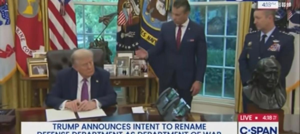特朗普受刺激了,9月5日把国防部更名为战争部!其实美国1947年以前一直使用战争