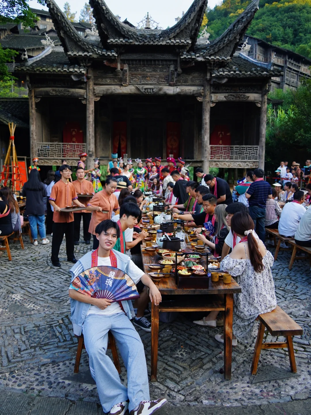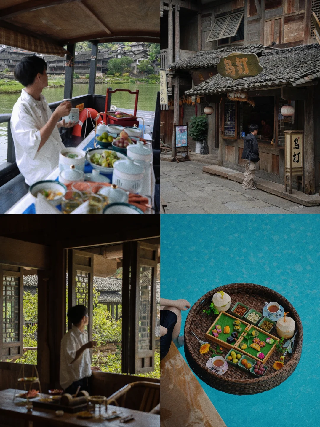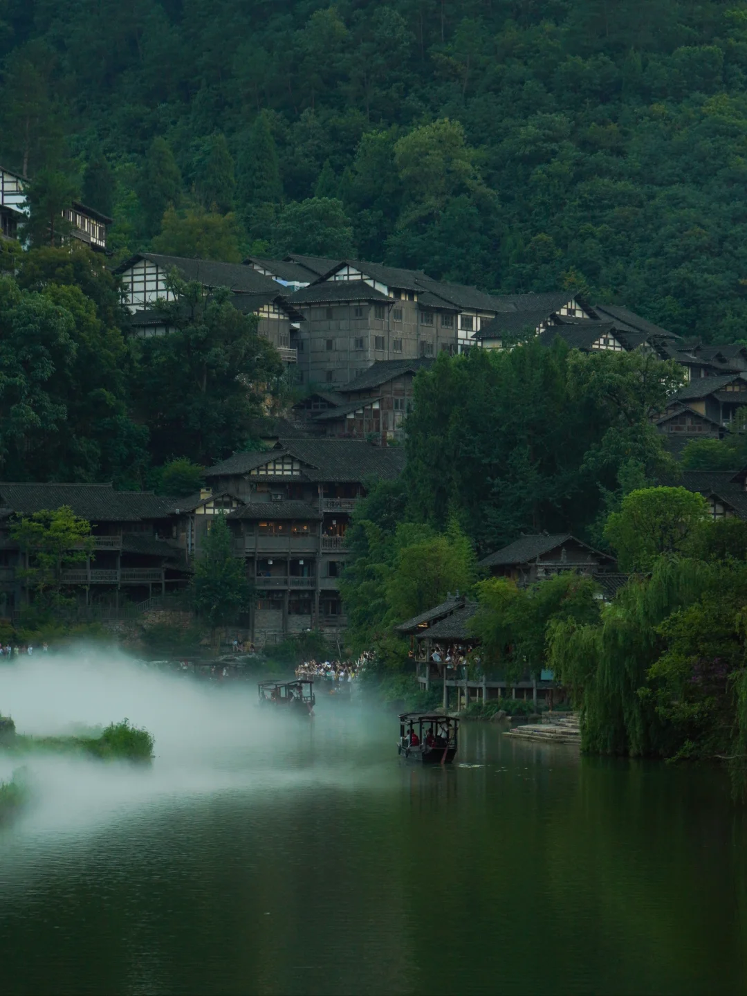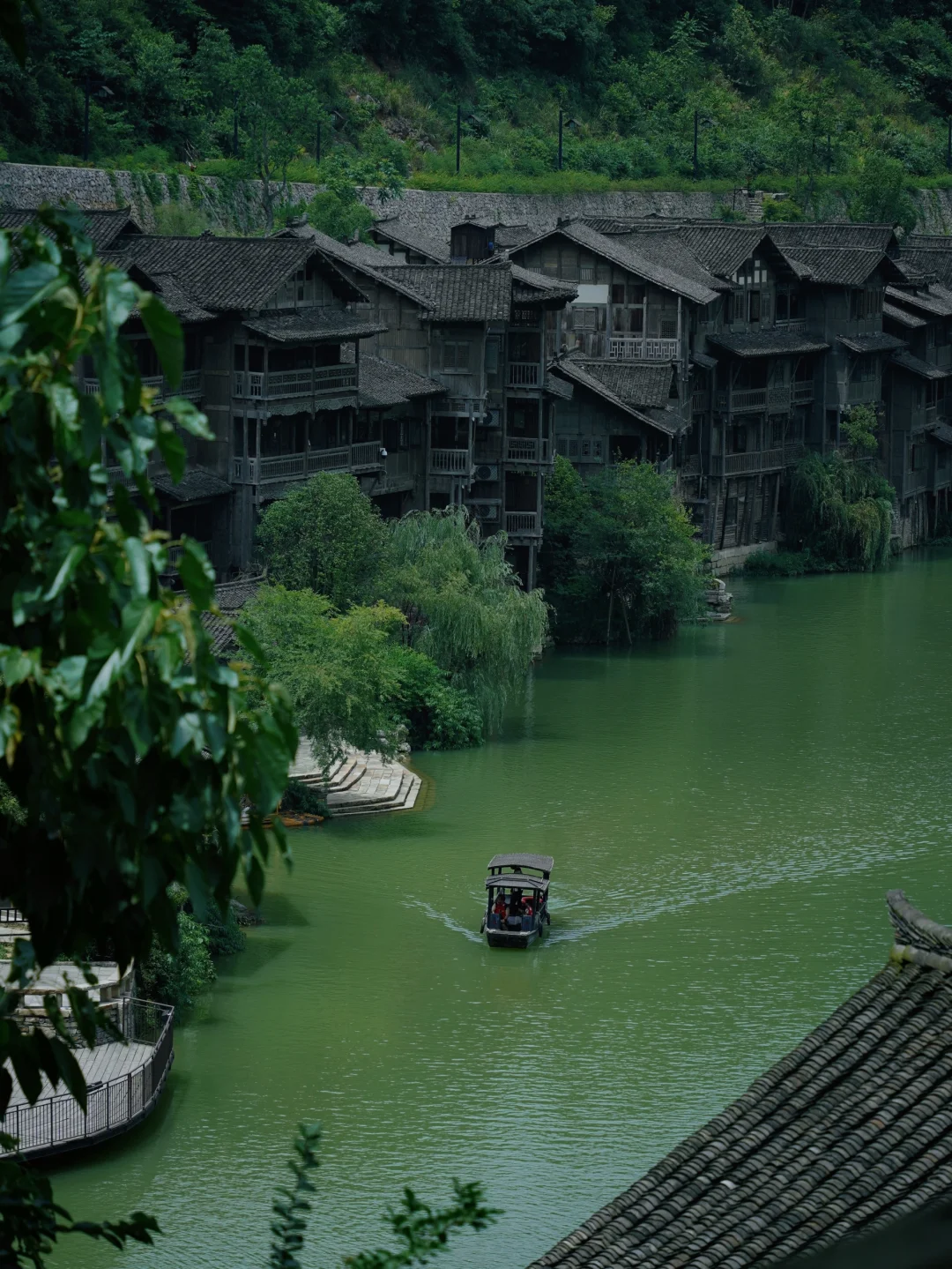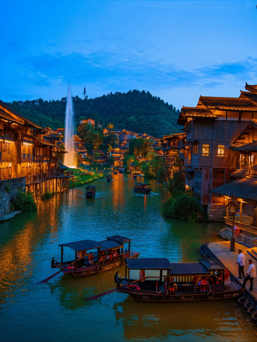如果这个夏天只能去一个避暑圣地,我一定会选贵州~一个平均温度20℃多度的地方。 但去过贵州N次,却第一次去乌江寨, 呆了2天根本不想走了。第一天晴天温度26℃,第二天阴雨天19℃😍。我真的大爱,特别是阴雨天时敲舒服~ - 它隐藏在山涧里,白天穿上苗服,体验一场少数民族的风情。 当夜幕降临,万家灯火骤然亮起,摇橹船从家家户户行驶过,那景色真的超绝😍 - 📍地址:贵州省遵义市乌江寨旅游度假区西寨口 - ✅关于游玩 🔸早上睡到自然醒,在酒店吃个丰富的早餐,或者有兴致也能租套苗服去码头乘摇橹船,来个贵州独一份的游船早餐,边享用早餐边观赏两岸风景,美极了。随后去到炎黄茶馆体验下竹筒清茶,发发呆很惬意~” - ⏰下午以体验手工活为主,像扎染、竹编花灯、通草堆画、抄写经书等等的~ 时间多还能去苗王酒店的无边游池吃一份丰富的漂浮下午茶,欣赏景区的全景。 - 🔸傍晚可以到廻龙岛欣赏黔北绝技——独竹漂,非遗传承绝技,感受全场欢呼。晚餐去体验多元民俗文化的八方宴,边观看8个少数民族的特色表演,边品尝8道民族美食,这一趟值了!结束晚餐后,再回到廻龙岛欣赏震撼人心的音乐水舞秀表演和无人机表演,夜幕下的乌江寨,在这一刻堪称绝美。 - 🔸晚上一定要去码头旁的太乙廊桥看乌江寨的夜景,超美的,可以说天花板级别😍(图1-2)。 沿途夜景很有电视剧的感觉,还有很多美食价格划算。 21:00时别忘了到廻龙岛参加篝火晚会,多个民族载歌载舞的热情,超有氛围感的。 - ‼️注意:进景区一定要记得在前台拍一下节目行程表,有超多节目的,可根据自己的时间自由安排参加。 📍关于怎么去 高铁或者火车抵达遵义南然后打车20分钟(30💰)左右到达乌江寨西寨口。广深高铁6h,飞机2h直达。 - 🏠关于住宿 附近住宿比较少,建议住景区里面,大概是600-800之间。包含了双人门票🎫+早餐+划船+特殊饮品等等的。 - 如果还有还有什么问题,记得评论区告诉我吧 我是浩然 我们下期见 拜~ -