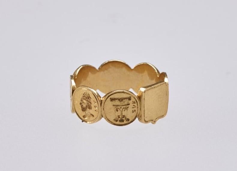 今年,卡米拉王后陛下频繁佩戴一枚金色小指戒,而今我终于确认——这原是皇家典藏中的一件珍品。 这是一枚由七块圆形牌匾组成的金环,每块牌匾上都刻有古老的符号,前面是纯金盾牌。 我超爱刷皇家典藏网的!永远能挖到意想不到的宝藏!这枚戒指我早就注意到了,一直等着更高清的照片来实锤呢!