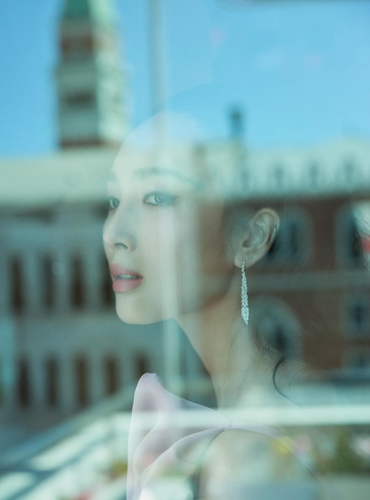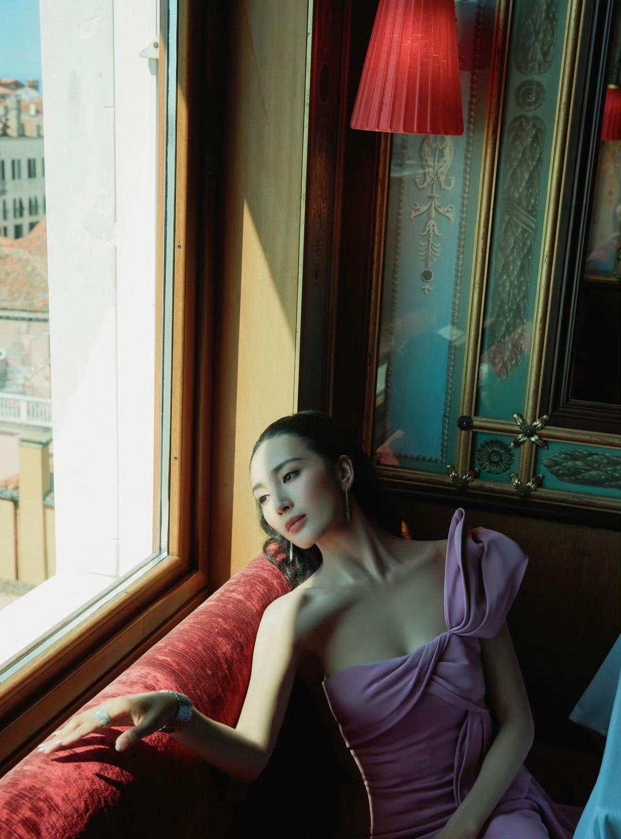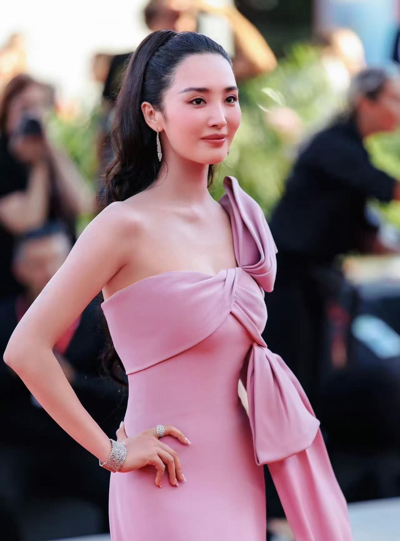 王紫璇一袭紫粉色蝴蝶结古董礼服亮相威尼斯电影节。