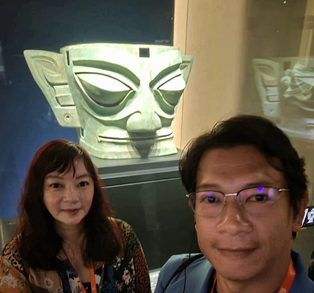台湾主播谷怀萱徐展元夫妇游四川 不知道大陆网友有多少认识台湾省女主播谷怀萱,也许曾经看过年代电视《新闻面对面》的网友记得,她和谢振武一起主持的画面。2019年她和台湾省知名体育主播徐展元结婚(两人是大学同学,各自有过一段婚姻,单身多年后中年再婚),宣布退出主播界。 最近她和老公一直在四川各地旅游,玩的很开心。