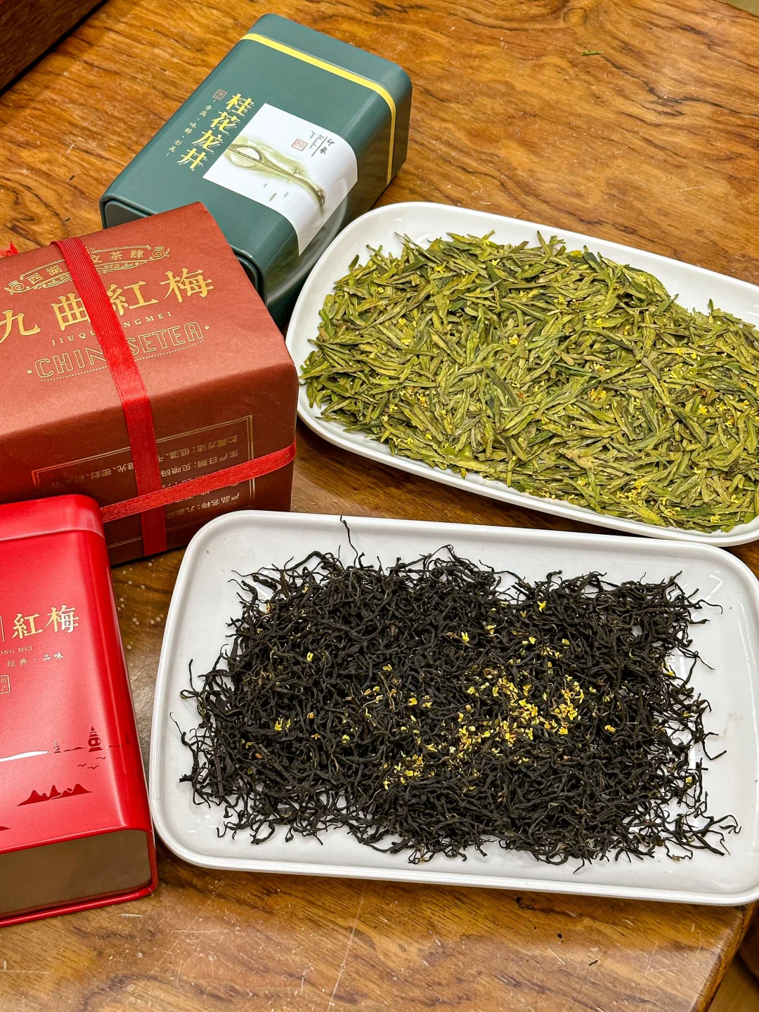 我推荐的:✔️西湖龙井真的一口爱上,清香扑鼻回味甘甜,这家都是山头上的茶叶,老板都是自己亲力亲为制作,怪不得没有以往我喝过的涩味…✔️桂花九曲红梅也很好喝,红茶给人的感觉更加醇厚浓郁~新鲜桂花是点睛之笔,很适合现在降温的初秋!!