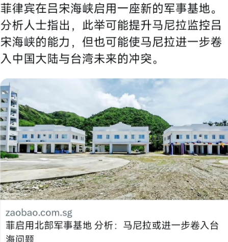 来自外媒9月7日消息说,菲律宾已经启用一座新的军事基地。这个基地位于吕宋海峡。