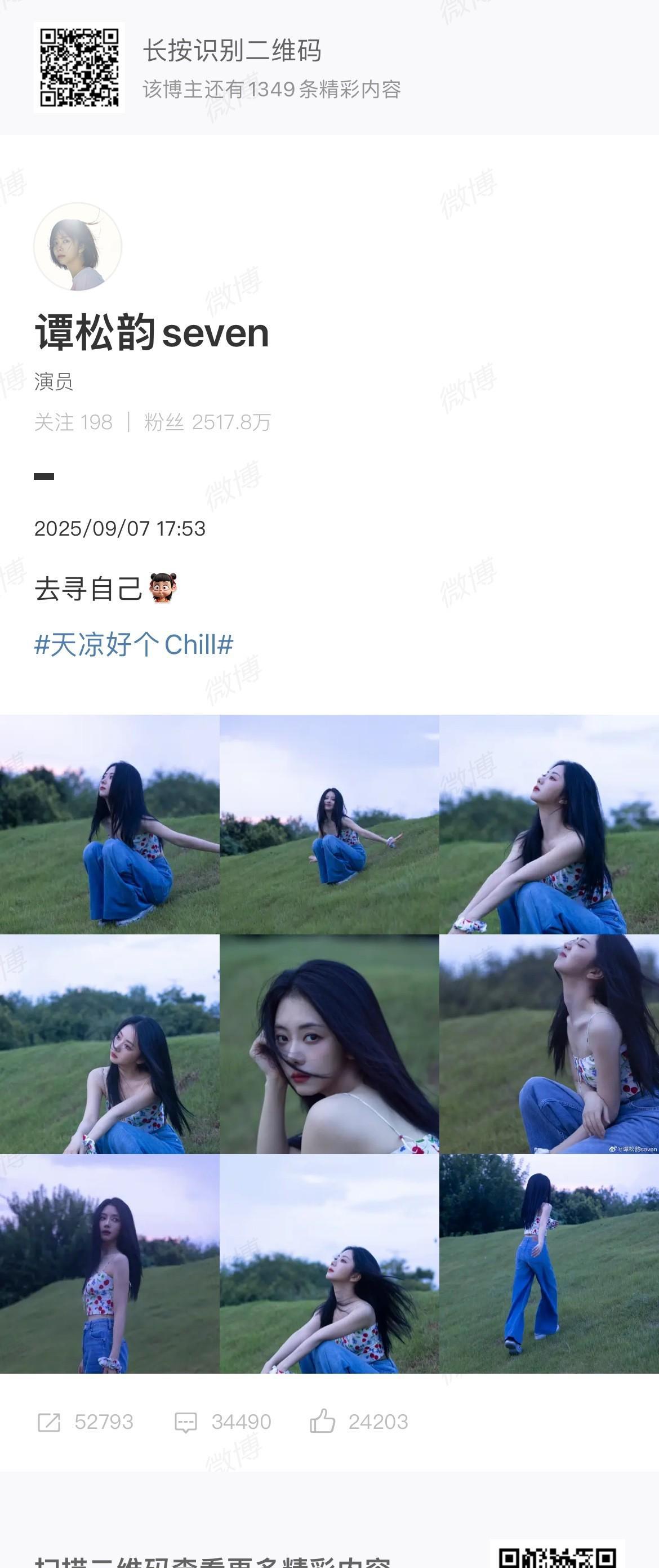 人怎么可以美成这样??两小姐更新个人动态,直接刷屏上热搜啦~ 碎花吊带背心,阔腿蓝色牛仔休闲裤,慵懒又清新微风吹起的发丝,和天边的蓝调时刻相衬托。清冷沉淀的气质,怎么看都不够每一张都让人疯狂存屏!! 谭松韵的日常私服审美没输过! 大家给这组新动态图造型打几分呢? #谭松韵# #谭松韵美照# #治愈系# #大片# #蓝调时刻# #日落前# #镜头下的一瞬间# #人比花娇#