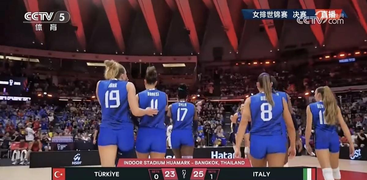 当今世界最强的两支女排展开对轰! 今晚,2025年世界女排锦标赛决赛,当今世界进攻火力最强的两支队伍相遇了! 巴黎奥运会冠军意大利女排迎战土耳其女排! 当今世界最强的两个接应碰面了!意大利女排的艾格努26岁,身高1.93米。土耳其女排的瓦尔加斯,25岁,身高1.94米。 25:23,意大利女排先赢了第一局。 两队进攻火力很猛,防守也特别地好!
