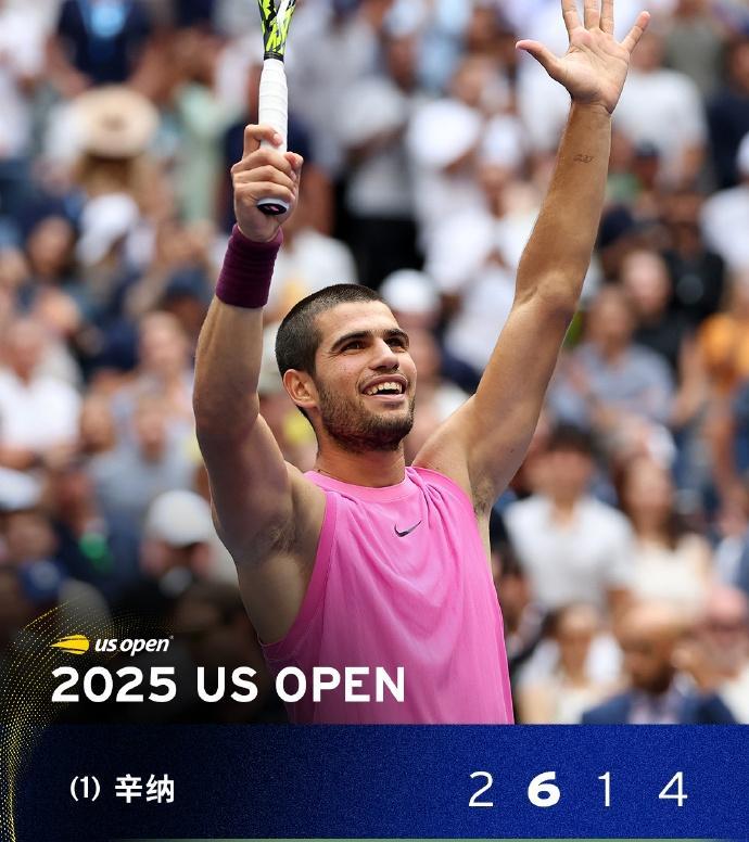 超级给力,重返世界第一! 阿尔卡拉斯3-1(6-2/3-6/6-1/6-4)力克卫冕冠军辛纳,夺2025美网男单冠军! 阿尔卡拉斯时隔3年再捧美网男单奖杯,斩获个人第6座大满贯,并拿下个人硬地大满贯第2冠! 本次夺冠也将使阿尔卡拉斯在ATP世界排名上超越辛纳,重回第一的宝座!
