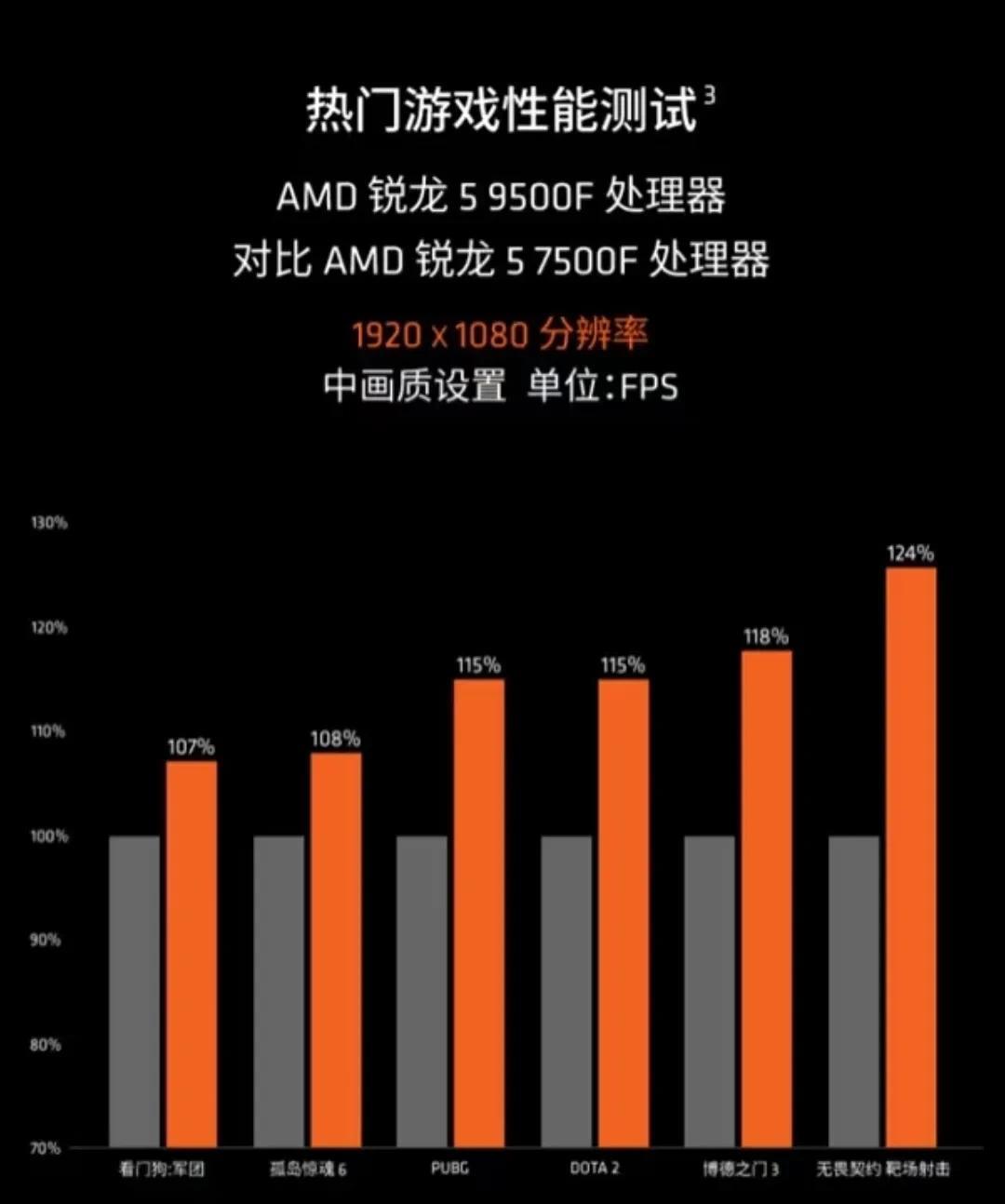 AMD锐龙5 9500F处理器今天正式开售,之前的预售价为1299元到底值不值。 这款处理器拥有6核心、12线程,标准主频8.8GHz,最高加速频率为5GHz,拥有38MBL3缓存,最高TDP为65W,AM5接口,无核显,需搭配独立显卡使用。 得益于最新的Zen 5架构,AMD官方放出游戏性能显示,锐龙5 500F相较上代7500F有了大幅提升。 小伙伴们感觉值不值。