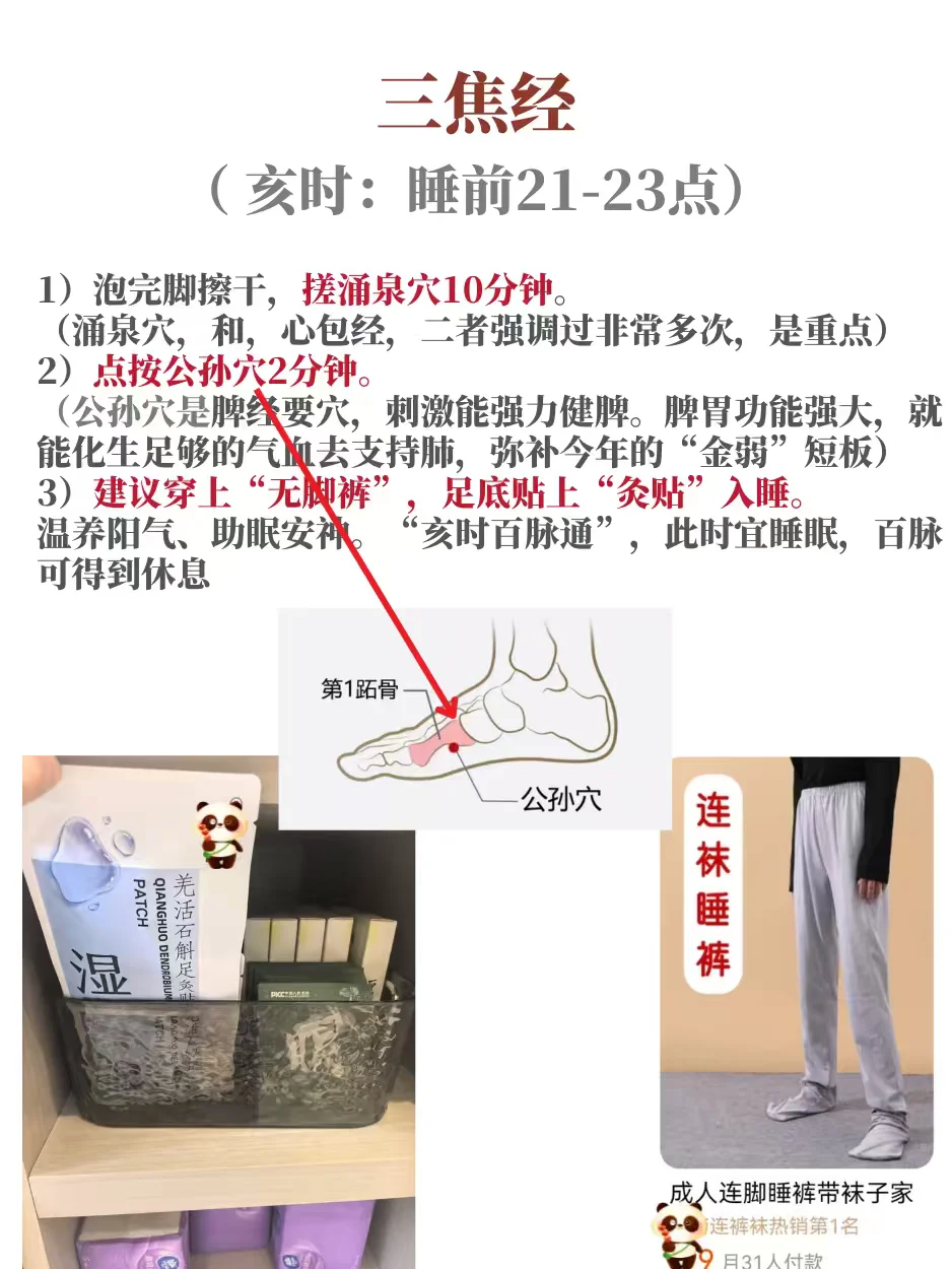 👆5)睡前 21-23点 亥时(三焦经)