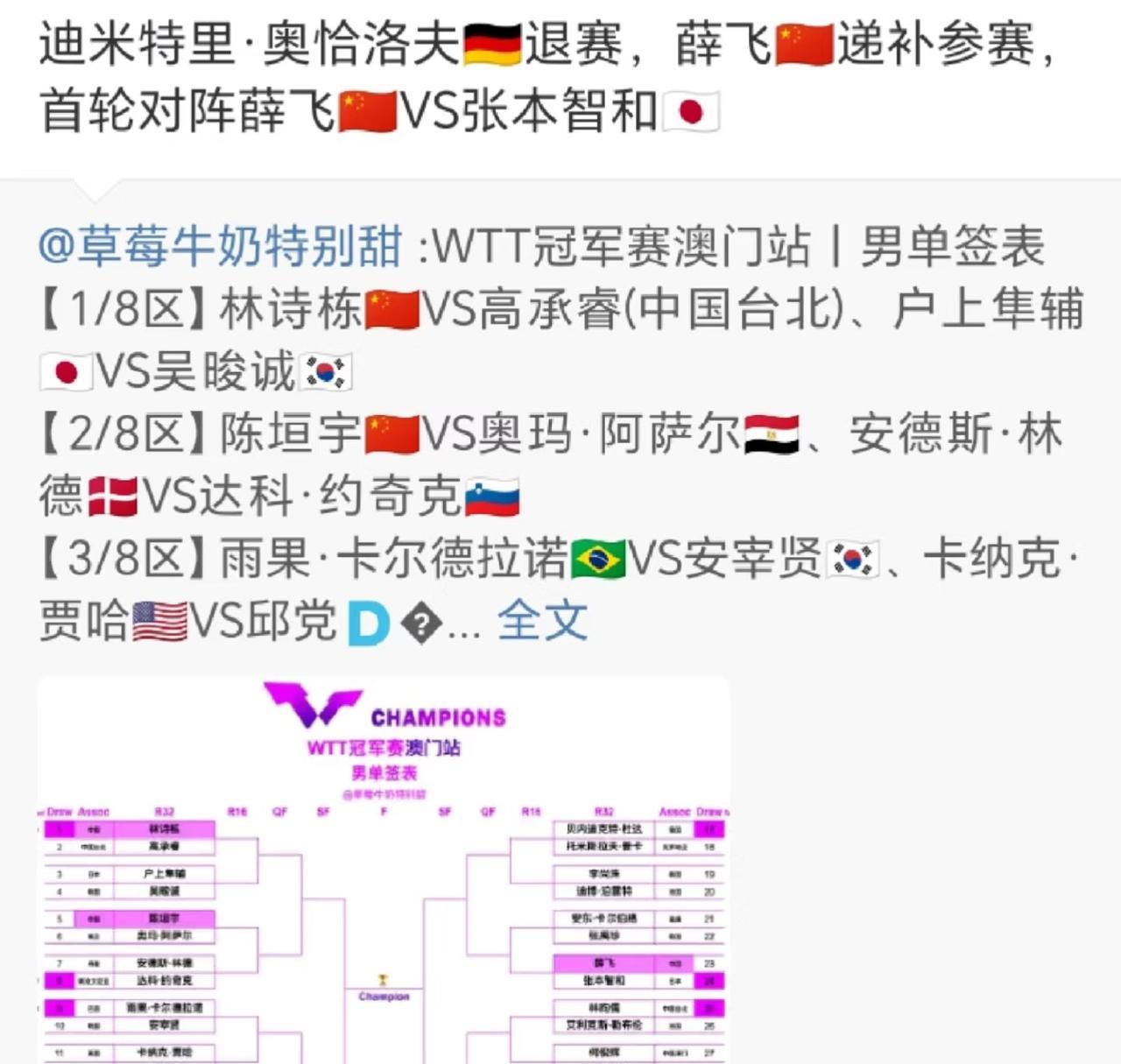 薛飞成替补专业户—不到半年替补三次 9月8日,WTT澳门冠军赛奥恰洛夫退赛,薛
