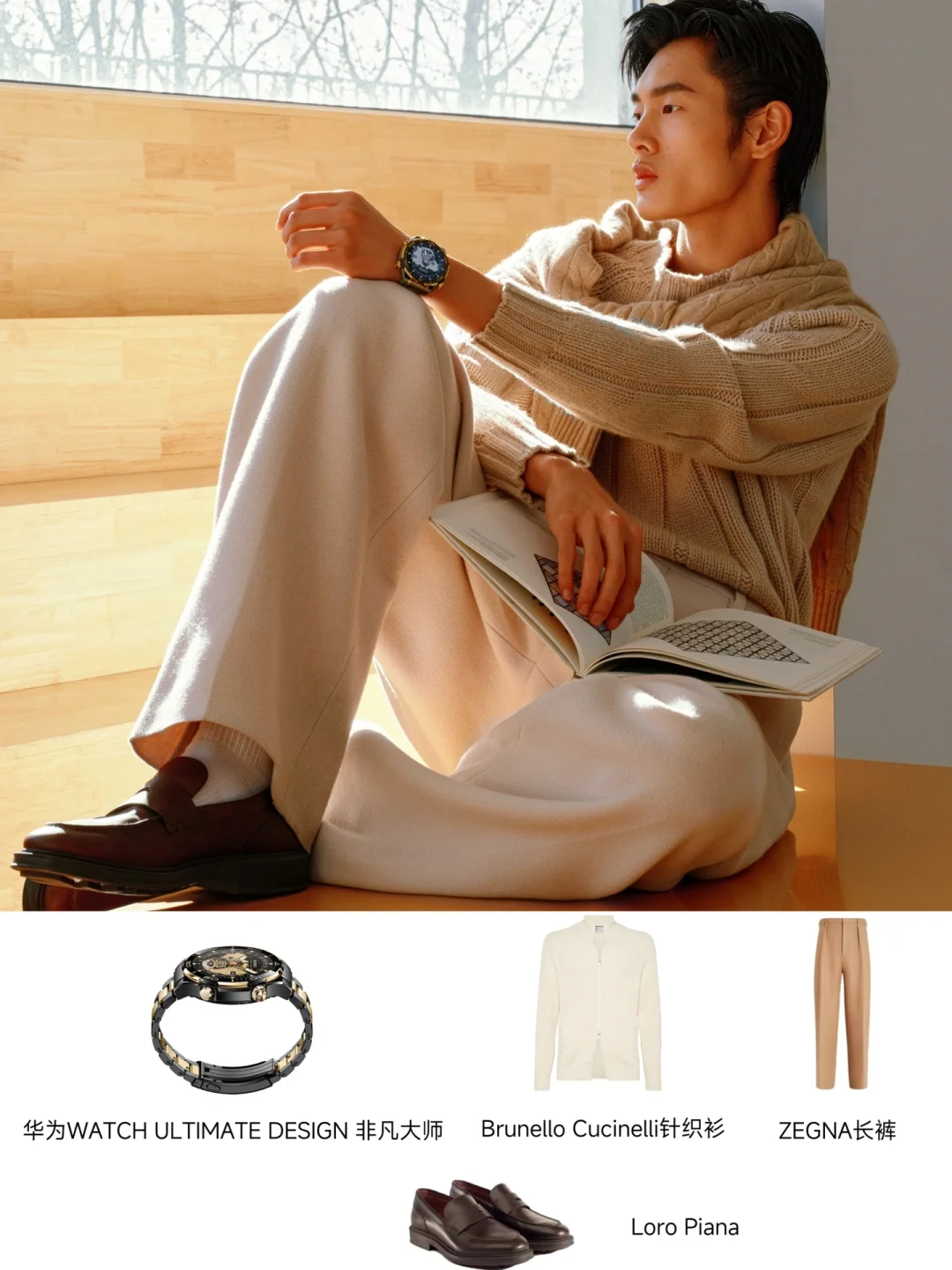 手表首次加入了18k黄金材质,镶金工艺,三格链节间金钛表带,让光影流连腕间,黑金设计诠释低调的奢华,一块金表搭上Loro Piana,老钱风直接拿捏!