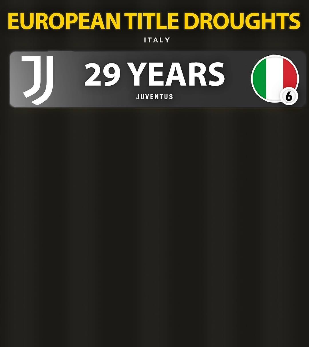 意甲是真的衰落, 尤文29年无缘欧战冠军我惊呆了, 米兰也已经快20年无缘欧战冠军, 国米这几年可惜了都差了那么一点, 上次还是魔力鸟年代也都15年了, 意甲真是肉眼可见的衰落! 最近几年也就真蓝黑和罗马拿了欧联和欧协联, 唏嘘啊…