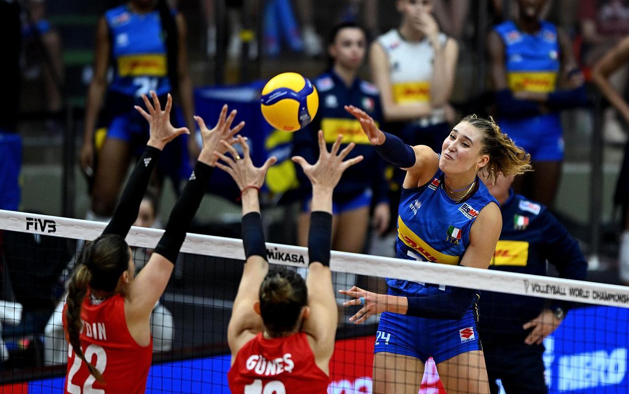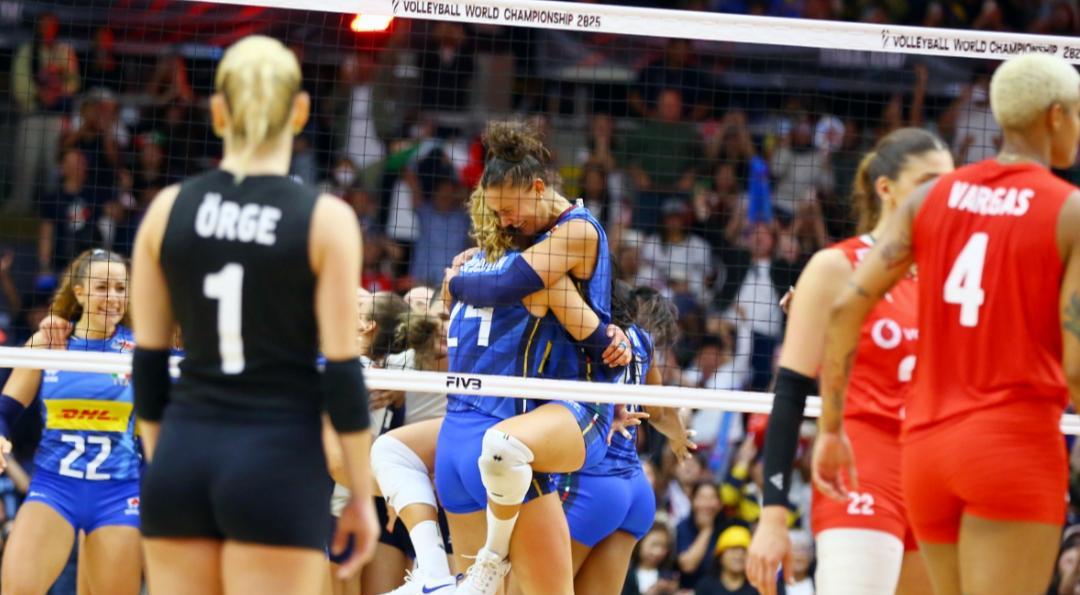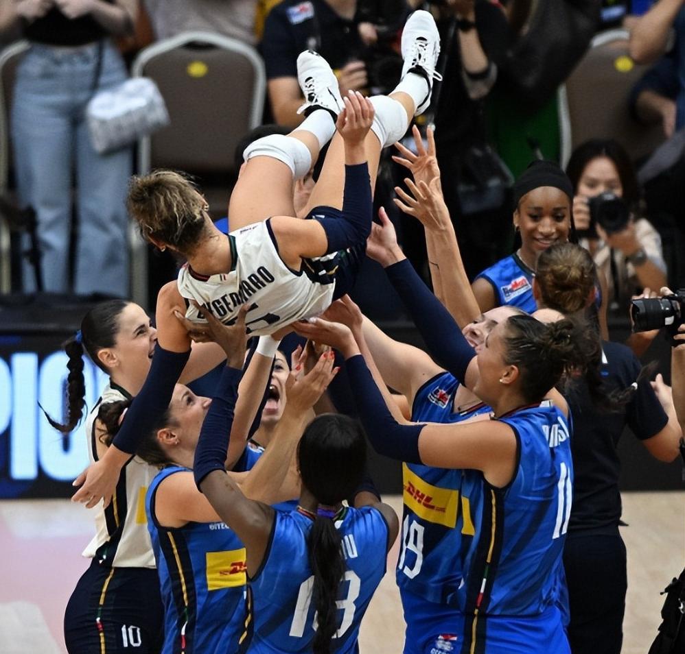 在泰国举行的女排世锦赛昨天落幕,在冠亚军决赛中,意大利女排继半决赛与巴西队苦战五局过关后,决赛再次与土耳其队展开一场五局鏖战,前四局双方以25-23、13-25、26-24、19-25战成平手,决胜局中,意大利队强势发挥,以15-8取胜,豪取国际比赛36连胜,继2002年世锦赛首次夺冠后,时隔23年再度捧起冠军奖杯,自去年巴黎奥运会起,实现了奥运会、世联赛和世锦赛三连冠,成为女排历史上首个达成此成就的队伍。首次打进世锦赛四强的土耳其队也表现不俗,全场比赛的扣球58-55和总得分93-85都领先于意大利队,自失都是19分,而且瓦尔加斯拿到了全场最高的33分,比意大利队得分最高的埃格努的22分高出不少,拦网虽然以6-12仅落后6分,但其中4分时意大利队在决胜局20平之后拿下的,直接“拦灭”了土耳其争冠的希望。在季军争夺战中,巴西女排与日本女排同样历经五局苦战,最终巴西队3-2险胜日本队,收获铜牌,延续了世锦赛无冠的“魔咒”。在1/8决赛被法国女排淘汰的中国女排最终名列第9。