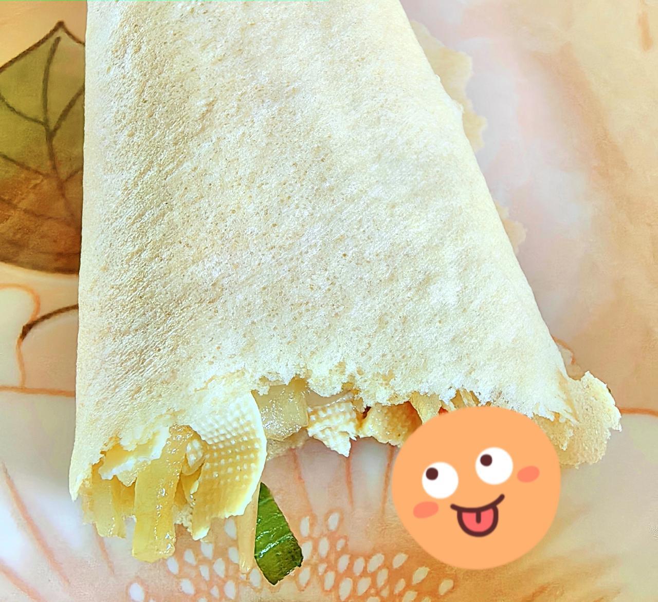 “面包遇煎饼,酥软藏真味。〞这商家太有创意了,给自家的煎饼起个新名字“面包煎饼”。本来是两种食物,面包是烤制的,煎饼是烙熟的。 这面包煎饼和普通煎饼有什么不同呢。首先是价格不同,比普通煎饼贵了三倍,包装也比普通煎饼精致。 买回面包煎饼,炒了盘菜,卷着吃了。还真的很好吃,面包煎饼比普通煎饼柔软,香甜,口感不错。连没牙的老妈都吃着都特别轻松。 以后就吃它了,吃点粗粮对身体有好处。我妈喜欢吃煎饼,咬着费劲。每次都里一边吃一边说硬。这回好了,以后就买这面包煎饼了!