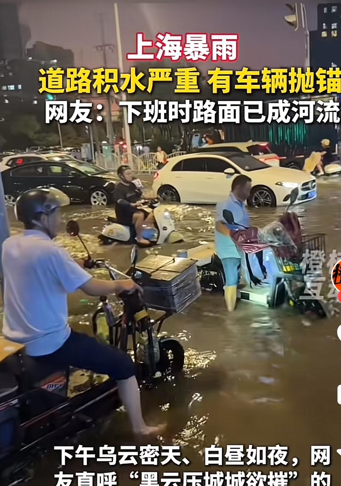 昨天上海的暴雨应该是这二十来年最猛烈的一次,瓢泼大雨,倾盆大雨!而且时间点刚好是小孩放学的时候,高年级大孩子还好,有些低年级孩子又哭又叫的,当时场面一片混乱!老师大声维持秩序,小孩有哭喊的,接小孩的家长大声喊小孩找小孩!由于雨又急且猛,许多小孩没带雨具,小孩接送点待上片刻,没有及时接走的小孩紧急被老师带到学校里面避雨!老师找学生,学生找家长,家长找孩子!再加上风大雨急!几分钟路上积水就到小腿肚了!大家在风雨中深一脚浅一脚的领着孩子回家!就算再大的伞,几分钟就会在急风骤雨中全身湿透! 早晨路边还有许多散架被丢弃的雨伞在述说着昨日的疯狂!