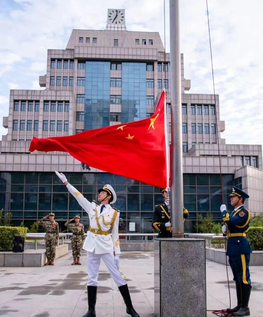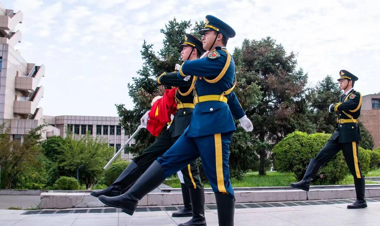 9月8日清晨,西安交通大学国旗护卫队举行新学期升旗仪式,以昂扬姿态共同开启新学期
