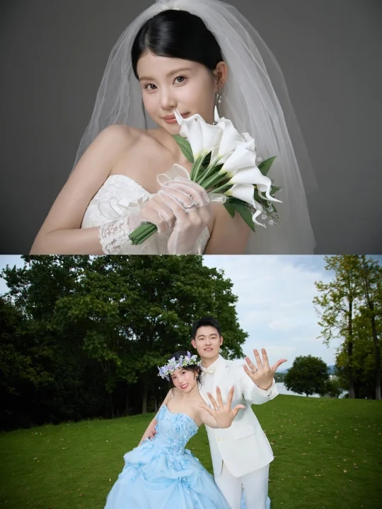 一共在杭州拍了3套 !已经迫不及待发出来了哈哈 [萌萌哒R]最喜欢定婚那套呜呜每张都好看 [喝奶茶R]每张都想发