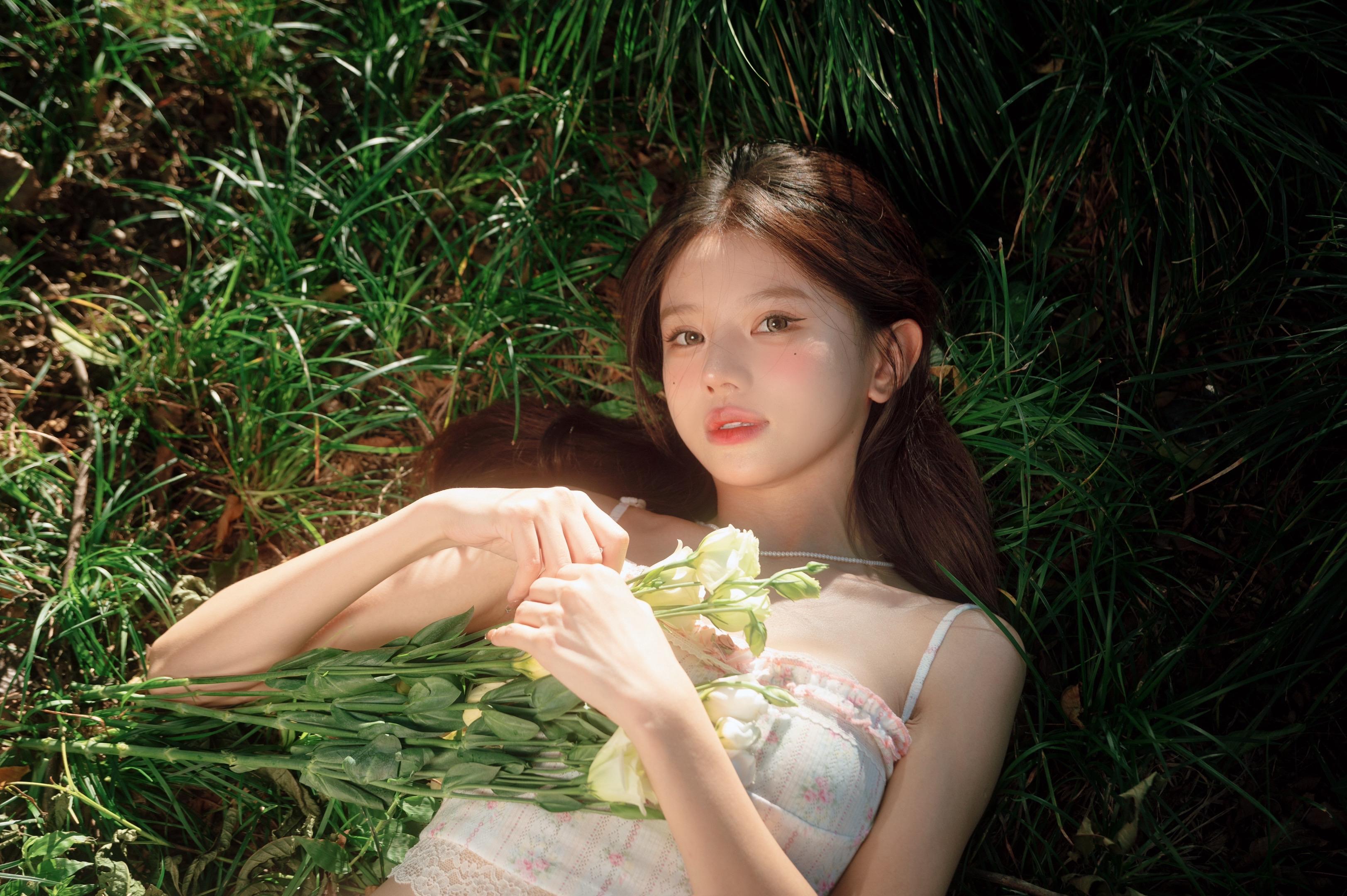 慵懒午后,花裙少女在柔软的床上小憩。