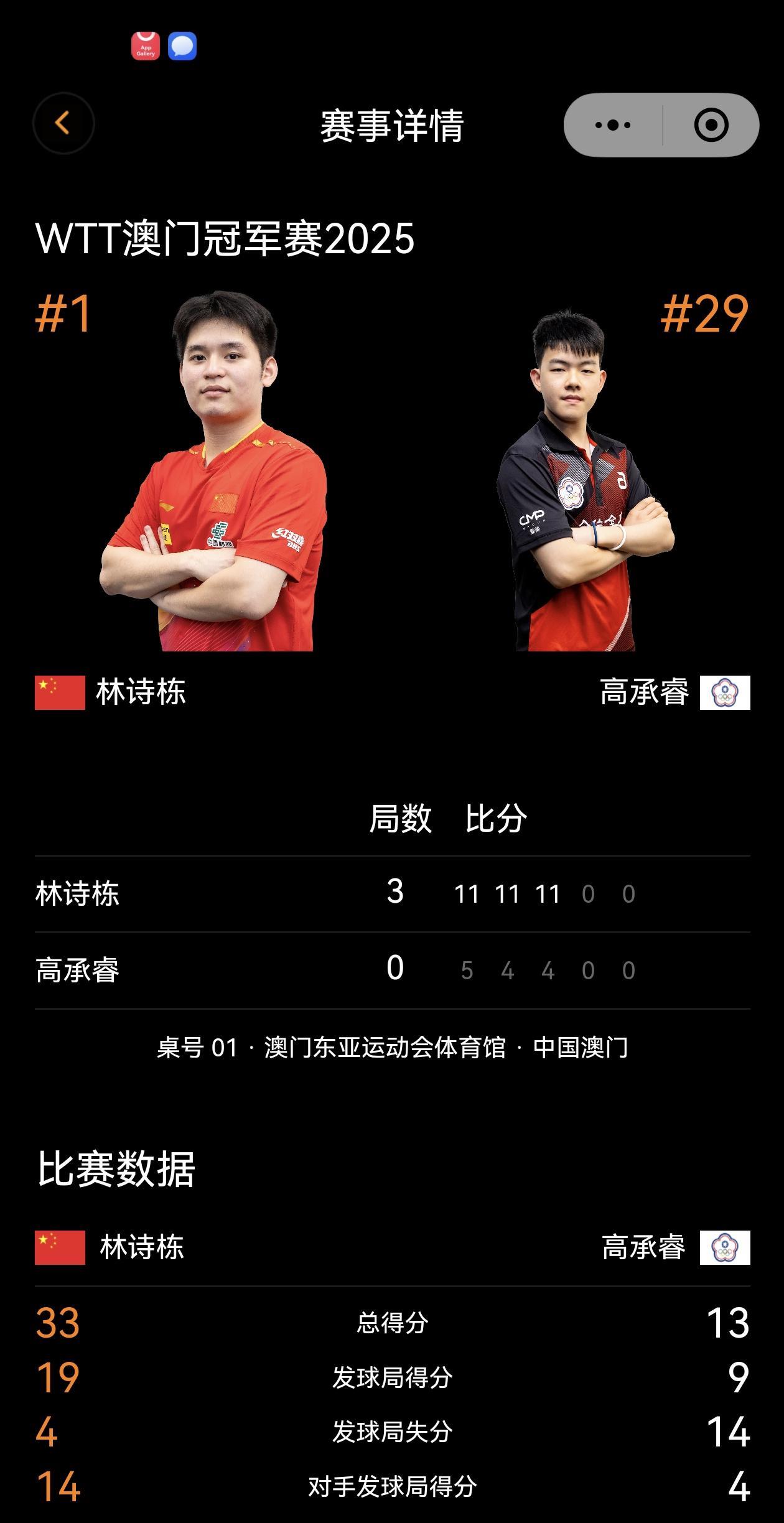 WTT澳门冠军赛2025(9.9-14):第一轮,1/16赛,国乒开门红:王艺迪、林诗栋、王楚钦3:1日本松岛辉空,晋级16强。小将黄友政被非洲一哥零封,这样比赛也是正常,连安宰贤、申裕斌、大布、松岛都一轮游了,一些球迷还是包容点吧[祈祷][祈祷][祈祷] 也关注评论区呵呵,有些信息放在评论区了呢。 #WTT冠军赛# #林诗栋# #王楚钦#