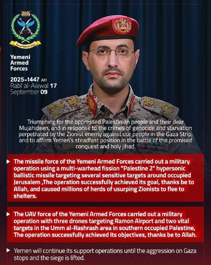 当地时间昨天晚上,也门胡塞武装向以色列中部地区发射了一枚弹道导弹。 胡塞方面的声明称昨天发射了一枚弹道导弹(攻击耶路撒冷)和三架自杀式无人机(攻击埃拉特—拉蒙机场)。 #胡塞武装#