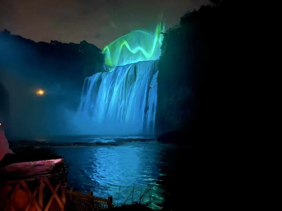 👉水云天瀑:重头戏来啦!来到瀑布脚下,看五彩灯光映照在磅礴的瀑布上,感受不同于白天的神秘与壮美,仿佛银河坠落人间,随便一拍都是大片📸