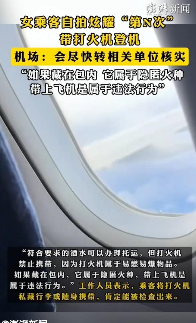 这也太嚣张了!女子在乘坐飞机的时候,居然靠着自己的小聪明把打火机带上了飞机,甚至