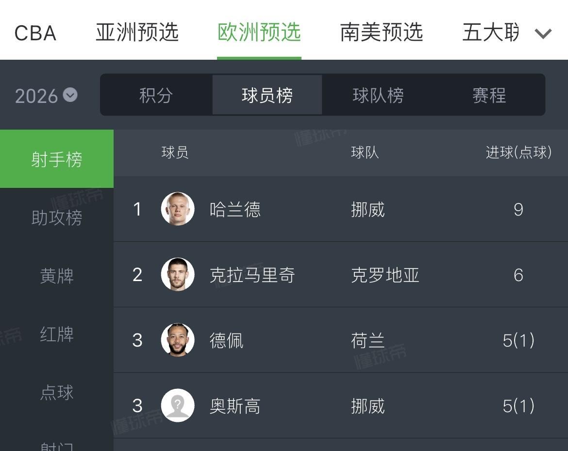 南美区世预赛已经结束了,梅西8球领跑射手榜,这是12轮比赛的数据。再看欧洲,哈兰