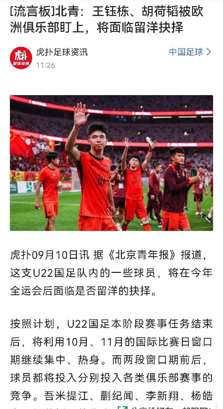 王钰栋和胡荷韬真的被国外球探看上了吗?那就赶紧出去吧,中超没啥锻炼价值,出国留洋