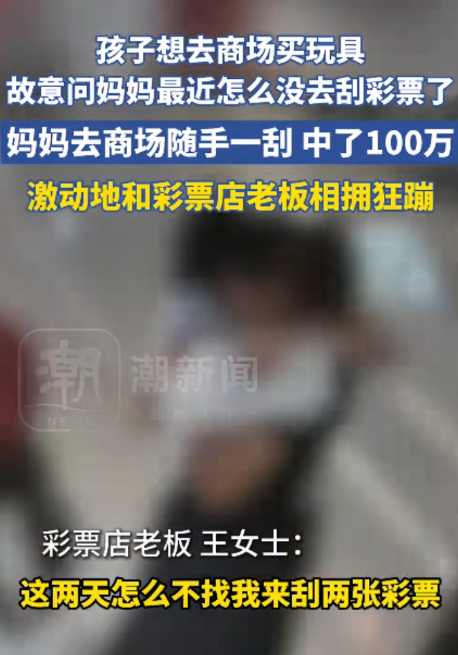 “这就是命啊!”近日,安徽芜湖,一孩子缠着妈妈要去商场里买玩具,妈妈没忍住随手买了几张刮刮乐,结果竟刮出了100万元大奖!看到真的中奖之后,这位妈妈和彩票店老板高兴的抱在了一起,网友:我买了几百张都没中过!