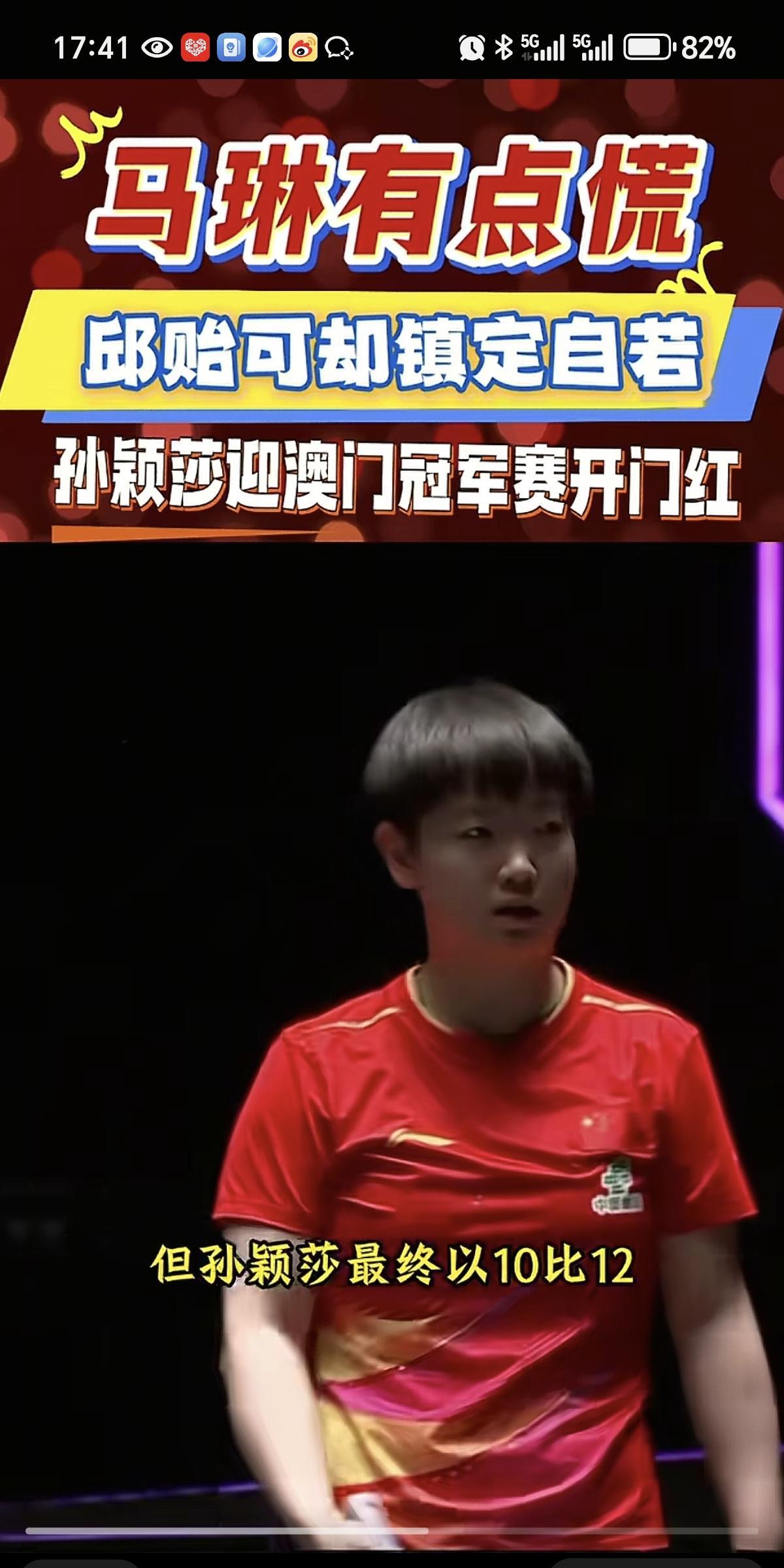 09月10日,孙颖莎比赛时,坐在观众席上的邱贻可,满脸的紧张的看着孙颖莎比赛,不愧是世界第一,迎来澳门冠军赛的开门红 孙颖莎3:1安娜赫尔希,虽然在第二局被对手赢下,也把场上的指导教练马琳和邱贻可吓了一跳,还好第三局后,快速调整状态,轻松战胜对手,挺进16强 孙颖莎在澳门冠军赛上,是夺冠的大热门,国乒教练也备受关注比赛,马琳坐镇场外教练,情绪价值拉满,孙颖莎也是见怪大风大浪,输一局后,显得更加淡定,出手更加凶狠,很快就把比分拉开,正手扣杀又狠又可爱 四局比分是: 11:7,10:12,11:3,11:4