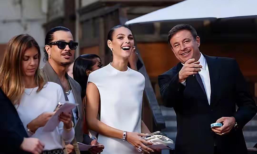 VC 亮相男友小李子新片首映,笑的好甜蜜~ “一块白布”礼裙来自TomFord 25秋冬系列 亮相小李子新片《一战再战》LA首映