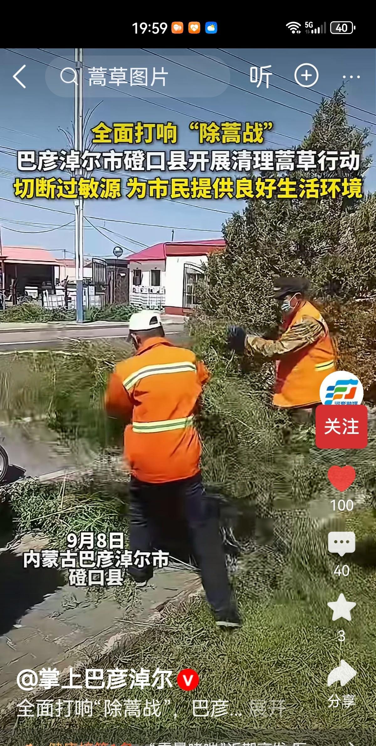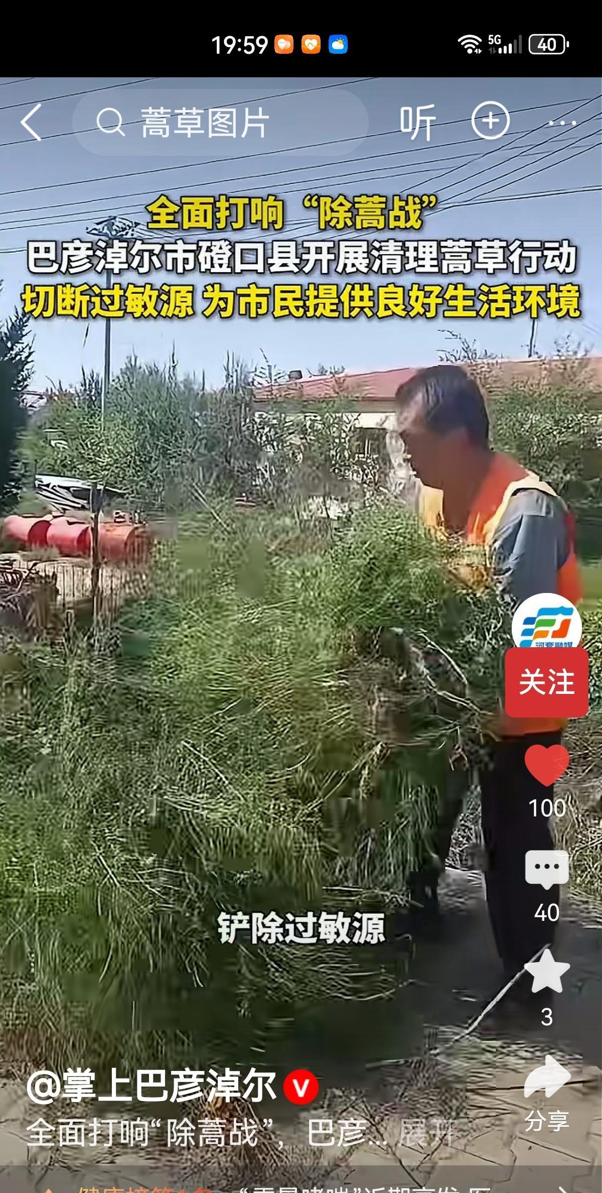 精神安慰剂式的行动。 蒿草已经长到成功开花扬粉的阶段了,这个季节已经快完成开花期了,才开始拔,可以说没有一点意义,要说有意义,也是对市民们精神上的一点安慰剂。 拔蒿草应该在没有开花前进行,这样才能从根本上治理花粉污染空气的事情。再者,靠人工拔简直就像是从大海里舀了一碗水,根本就起不到去除花粉污染空气的作用。 这种行为纯属给人们精神上的安慰剂。