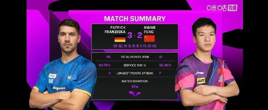 看王皓教练由希望到失望的表情,也是真有些心疼!小将冲不出来! WTT澳门冠军赛向鹏2-3弗朗西斯卡,说不可惜是假的!!就差两分! 第四局的11-1就像过山车一样!第五局是真可惜,最后那几个发球不坚定了,也没大胆作出变化!!得再下点功夫!!下次再来! 弗朗西斯卡采访中有提到,向鹏上一次赢过他,这次也是实力的碰撞,自己更幸运些!很谦虚的德国名将!! 希望向鹏好好总结复盘,下来赢岁来,继续加油!![加油][加油]