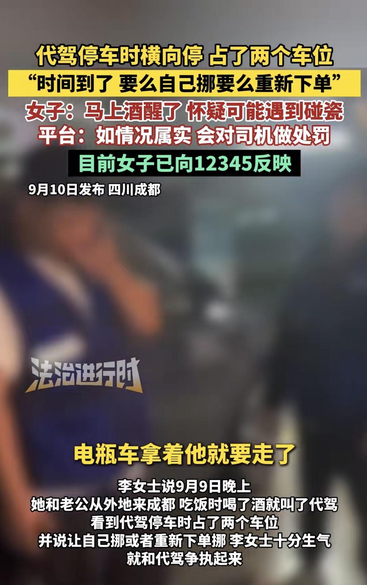 四川成都,女子和丈夫酒后叫了个代驾,到车库后,代驾竟横向停车,占了2个车位 ,女子让他停好,代驾不情不愿地说,我时间到了,你要么自己挪,要么重新下单。女子怀疑代驾是故意的,对方却说,我停不好,我就这样!双方就这样在地库僵持了2个小时。 9月9号那晚,李女士和丈夫风尘仆仆地从外地开车赶到成都。 刚到地方,两人就寻思着找个地儿好好吃一顿,犒劳下这一路的奔波。 饭桌上,李女士和丈夫小酌了几杯,微醺之间,考虑到酒后不能开车,他们便在平台上花15叫了个代驾。 不一会儿,代驾师傅就到了。李女士和丈夫把车钥匙交给代驾后,就安心地等着代驾把车开到目的地。 等车开到车库,代驾把车停好,李女士和丈夫就下了车,可眼前一幕让他俩不禁眉头紧皱。 这代驾师傅居然把车横向停着,一下子占了两个车位。这车停得歪歪扭扭不说,还浪费了公共资源,李女士心里顿时就有些不痛快了。 车停好后,代驾师傅二话不说,骑上电瓶车就准备走。 李女士见状,赶紧喊住他,说小伙子,麻烦你帮我把车停好,你停成这样多不方便啊。 谁知道这代驾师傅一脸不耐烦,直接回了句:我这时间已经到了,要么你自己挪,要么你重新下单,我给你挪。 李女士一听这话,原本还有些迷糊的脑袋瞬间就清醒了,酒也醒了大半。 她当即反应过来,这代驾师傅不会是故意碰瓷吧?哪有这样提供服务的,车都没停好就想跑? 李女士气得很,情绪一下子就上来了,大声说道:把车正常停好是你们最基本应该做的,就只需要把方向盘稍微转一下,你肯定是故意这样停的,哪有这么办事的! 代驾师傅也不甘示弱,脖子一梗,破罐子破摔地说:我停不好,我就这样! 这态度,把李女士气得直哆嗦,李女士和丈夫站在车旁,跟代驾师傅僵持了起来。 这大晚上的,车库里又冷又安静,可他们俩的心却像被火烤着一样,又气又急。 时间一分一秒地过去,这一僵持就是2个小时。眼看代驾还是没意识到自己的错误,还一副很有理的样子,李女士实在不想跟这个代驾师傅再耗下去了。 于是,她赶紧拿出手机,联系了代驾平台,把事情的来龙去脉一五一十地说了个清楚,然后进行了投诉。 还好,平台反应还算迅速。没过多久,就来了一个看着像是领导的人。 这人一到,先是一脸歉意地给李女士和丈夫赔不是,李女士心里的气这才稍微消了点。 可那名代驾师傅呢,还是一副不服气的样子,站在旁边,满脸的不情愿。 最后,在领导的指挥下,他才不情愿地走到车前,把车挪到了正常的车位。 李女士一看,这不是能停好车吗?刚刚到底是停不好还是不想好好停,不是一目了然吗? 那么,从法律角度,怎么看待代驾的行为? 《民法典》第509条规定:当事人应当按照约定全面履行自己的义务。 李女士通过代驾平台与代驾人员形成了服务合同关系。代驾人员的核心义务是把车辆安全、规范地停放到指定位置。 然而,案例中的代驾把车横向停放,占了两个车位,显然没有全面履行自己的停车义务,违背了合同约定的基本要求。 从诚信原则角度来看,代驾人员有义务以专业、负责的态度完成服务。但这个代价以“时间到了”为由拒绝规范停车,还让顾客自己挪车或重新下单,没有遵循交易习惯中应有的协助顾客解决问题的义务。 李女士有权要求代驾人员继续履行合同义务,将车辆规范停放。 《消费者权益保护法》第16条规定:经营者向消费者提供商品或者服务,应当恪守社会公德,诚信经营,保障消费者的合法权益;不得设定不公平、不合理的交易条件,不得强制交易。 代驾平台及代驾人员作为服务经营者,和李女士之间存在服务交易关系。 代驾人员未按规范停车且服务态度恶劣的行为,没有履行好提供合格服务的义务,损害了李女士作为消费者的合法权益。 代驾人员以不合理的理由拒绝完成规范停车服务,还表现出不耐烦和强硬的态度,没有恪守诚信经营的原则。 代驾人员要求李女士自己挪车或重新下单,相当于给消费者设定了不公平、不合理的交易条件。 李女士可以根据此法条,向代驾平台投诉代驾人员的不当行为,要求平台督促代驾人员履行义务,规范停车。 同时,平台作为经营者,有责任对代驾人员进行管理和处罚,好保障消费者的合法权益。 目前,平台客服给李女士打来了电话,在电话里表示会对这名司机进行相应的处罚。李女士听了,心里这才稍微舒坦了一些。 她心想,这代驾行业本来是方便大家的,可要是都像这个代驾师傅这样,不认真履行自己的职责,还跟顾客耍脾气,那以后谁还敢叫代驾啊? 对此,你怎么看? 信源:法制进行时 2025.9.10 关注@运良说法 学法律知识不迷路 #头号创作者激励计划#